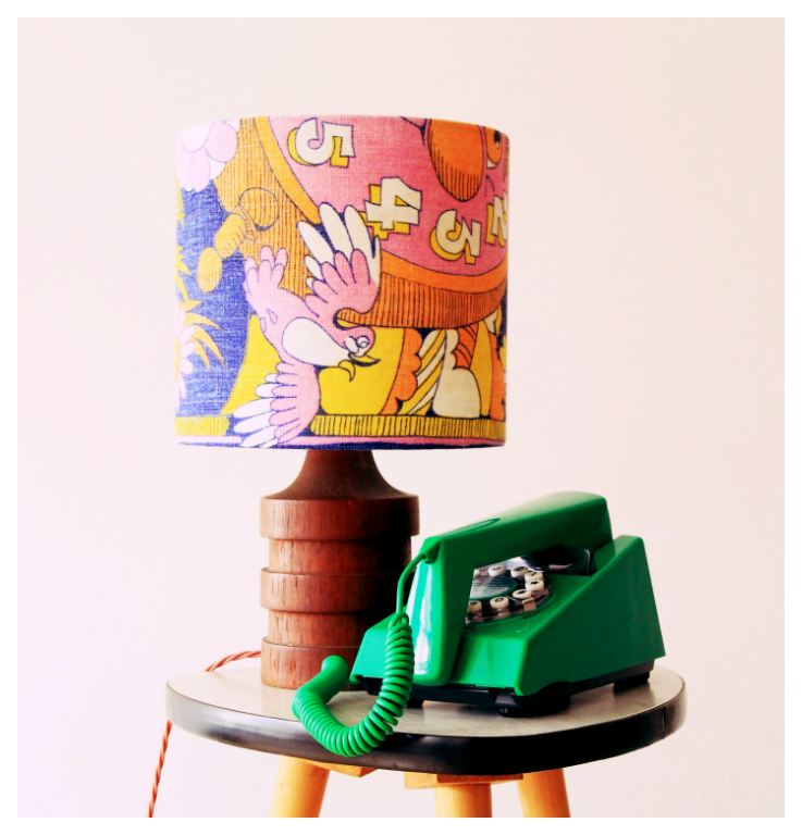 Et Voila! You have one completed, professional looking drum lamp shade, up-cycled from a vintage tea towel!