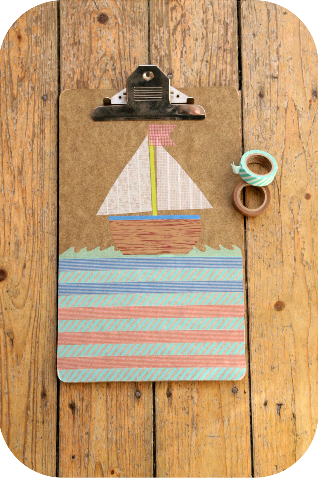 I started decorating this clipboard with washi stripes. Then I got bored and added a boat. Enjoy.