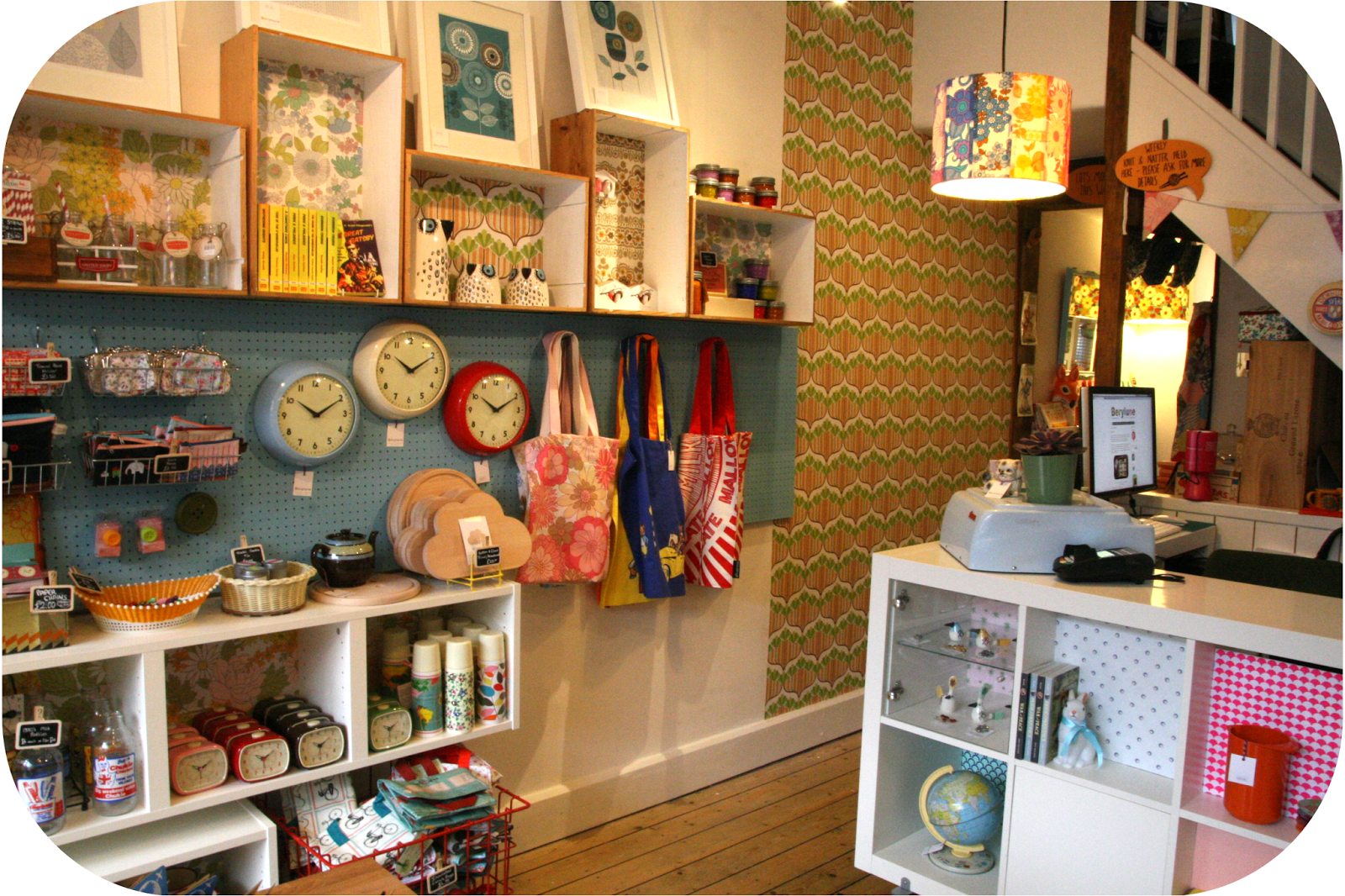 You might have noticed we've had a bit of a switch around in the shop; we have moved and replaced our counter, papered a bit of wall with some beautiful 1970s wallpaper, relocated our wooden crates and erected a Billy bookcase.