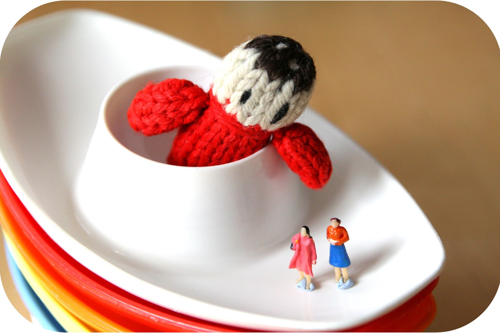 Much to Gladys and Beryl's delight, ManE has returned from his long stay in the U S of A. We've been enjoying pictures of ManE's adventures over on his Knitted Man blog. Judging by the delicious looking food he helped Zoë and Paul eat, we're surprised he can still fit in his knitted jumper!