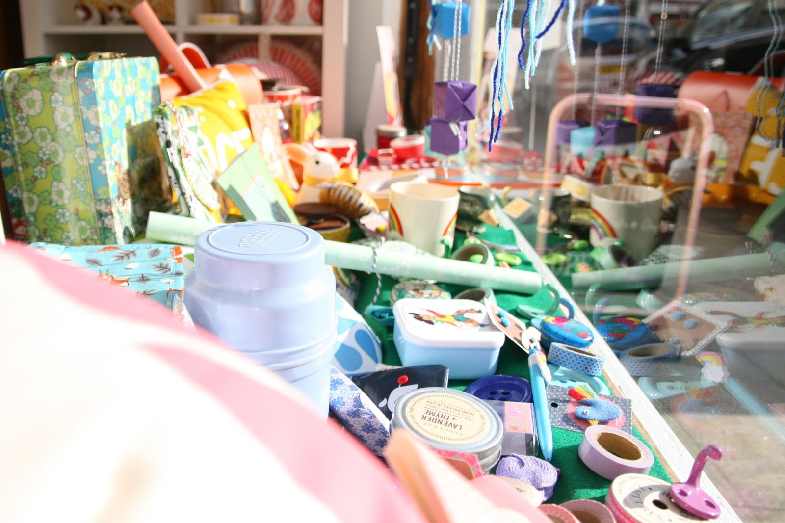 The bunnies had to go back to their hutches (well, shelves), as Easter has drawn to an end. So Amy put her rainbow-filled thinking cap on to come up with a new window display. What do you think the first thing that came to mind was?