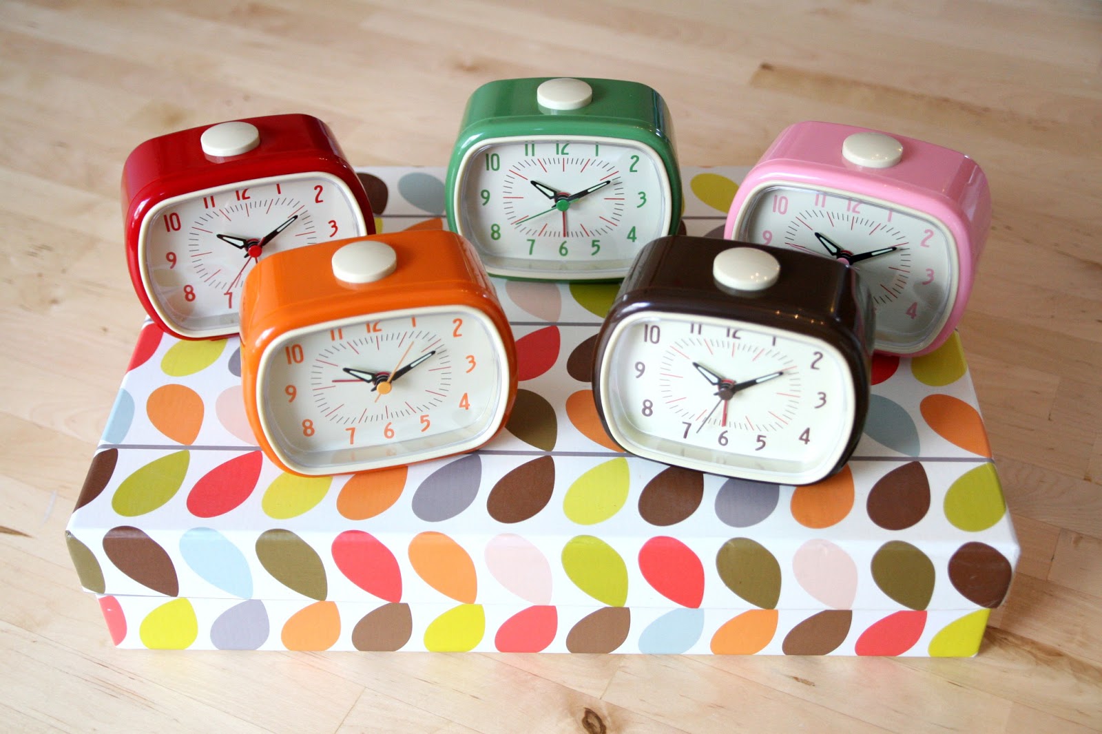 I actually have three alarms to wake me up in the morning. It's not that I don't like being up and about, it's just that my bed is sooo comfy. We have just (today) taken delivery of some new alarm clocks in the shop; whilst I don't really need any more alarm clocks, having one of every colour does appeal.