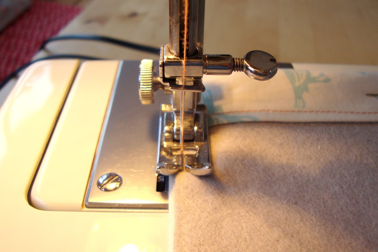 9. Stitch along the top and bottom of the book cover, leaving a 5mm gap from the edge - careful, if you stitch too far from the edge, your book won't fit! As you stitch, you will sandwich the felt between the pockets and secure it to your pretty, interfaced, fabric.