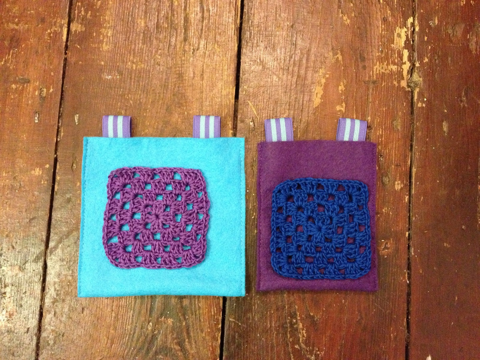 Denise is at a craft show in Manchester this week. She decided at the 11th hour that she wanted tool pouches to thread on to her belt, to keep her crochet hooks and other essentials organised and handy. Zoë swiftly got stuck in to hand stitching some felt pouches, whilst Denise crocheted some granny square motifs for the front. They needed wide elastic to complete their project, not a problem in the Berylune studio, with our vast collection of craft supplies to hand. But as it happened, Amy had this stuff in her HANDBAG. That's just how we roll.