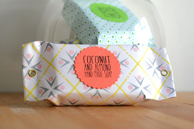 Aside from smelling marvelous, all our soaps are hand made in the England and wrapped in house by our own fair hands.We had some seepage on the first few soaps we wrapped in greaseproof paper, so now we are wrapping them in cellophane instead, sealed with a sticker detailing the ingredients. Here is what the soaps look like inside the pretty paper wrapper: