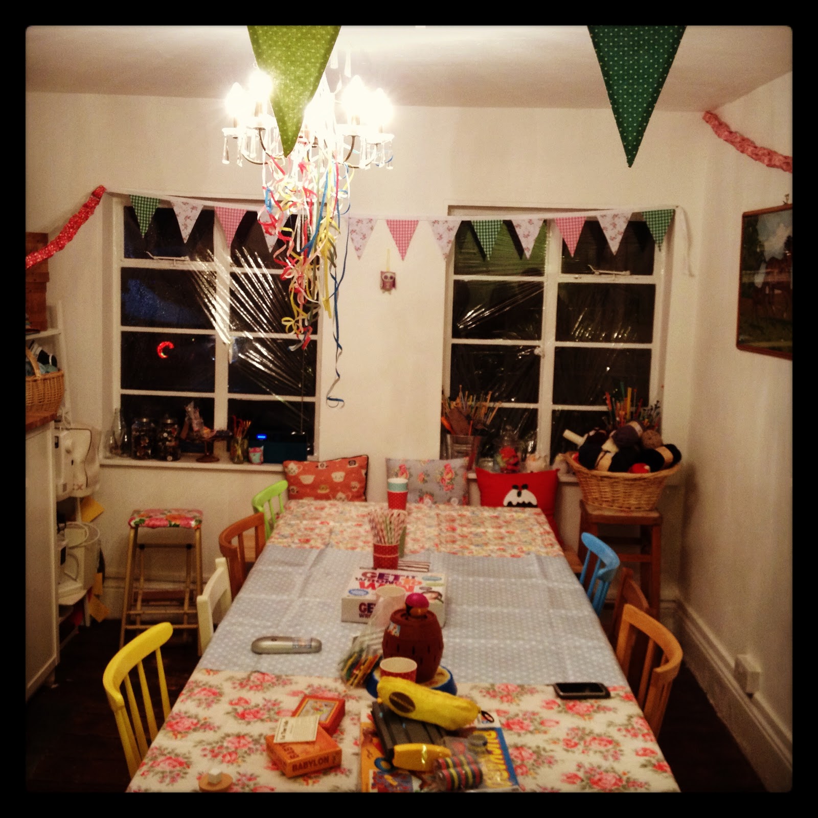 There were buzzers and tiles and chips and dice and blocks and donkeys and pirates and bananas....but no twister, we don't have space for that.