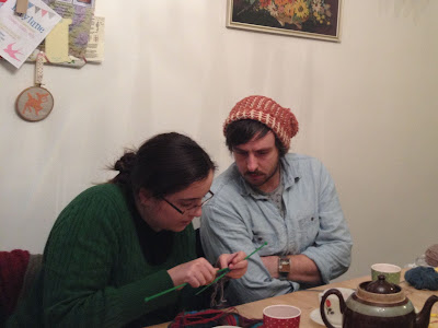 Also, crocheted bags were put on heads. I do have pictures of this. However, the person in question has pictures of me with my hand up an owl's bum, and another of me modelling a cracker hat, fashioned in to a super hero mask. So I'll keep those to myself.