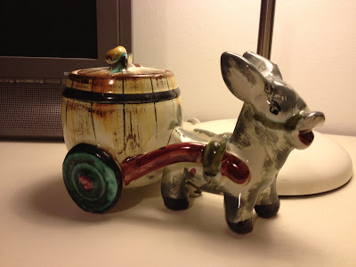 We do have new vintage stock in all the time, I just forget to photograph it... Like Donkeys. A couple of years ago, I won a box of bits and pieces from an auction that included the most fantastic ceramic Donkey with a pot on the back for condiments. It wasn't why I bought the box, inside there were some other things I wanted. I decided the Donkey was cool.