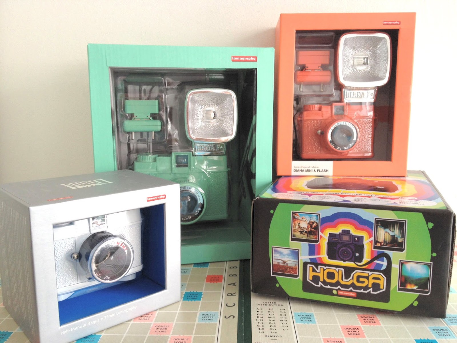 The Lomos came. And we have some new designs. There is a peach one and a mint one and a white one.... And a Holga. We have been reading about Holga. She's a bit like extreme lomography, not to be undertaken lightly. She comes with tape, so you can seal up the holes that let 'unwanted' light in. Unless you want the light, that's part of the fun. Amy described it as a tin can with cogs... Click here for more examples.
