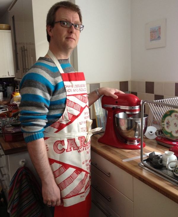 It was Paul's birthday last week. As he's a huge fan of Caramels and Scotland in general, and has recently started baking yummy biscuits, we decided to give him an exceedingly manly Gillian Kyle apron. Here he is, looking manly: