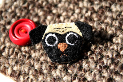 Zoë made me a felt pug brooch! He is the cutest thing, I love him. He's been living on my clothes for over a week now.