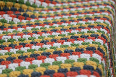 Those of you who know me from knit and natter know that I have only learnt to crochet in recent months. I find that crochet grows at a satisfying speed. I love retro granny squares and zany colours together. Oddly, my first blanket wasn't granny squares though, I went for a stitch called 'Larks foot', which I found over at Meet Me at Mikes (great tutorial if you like the look of it!).