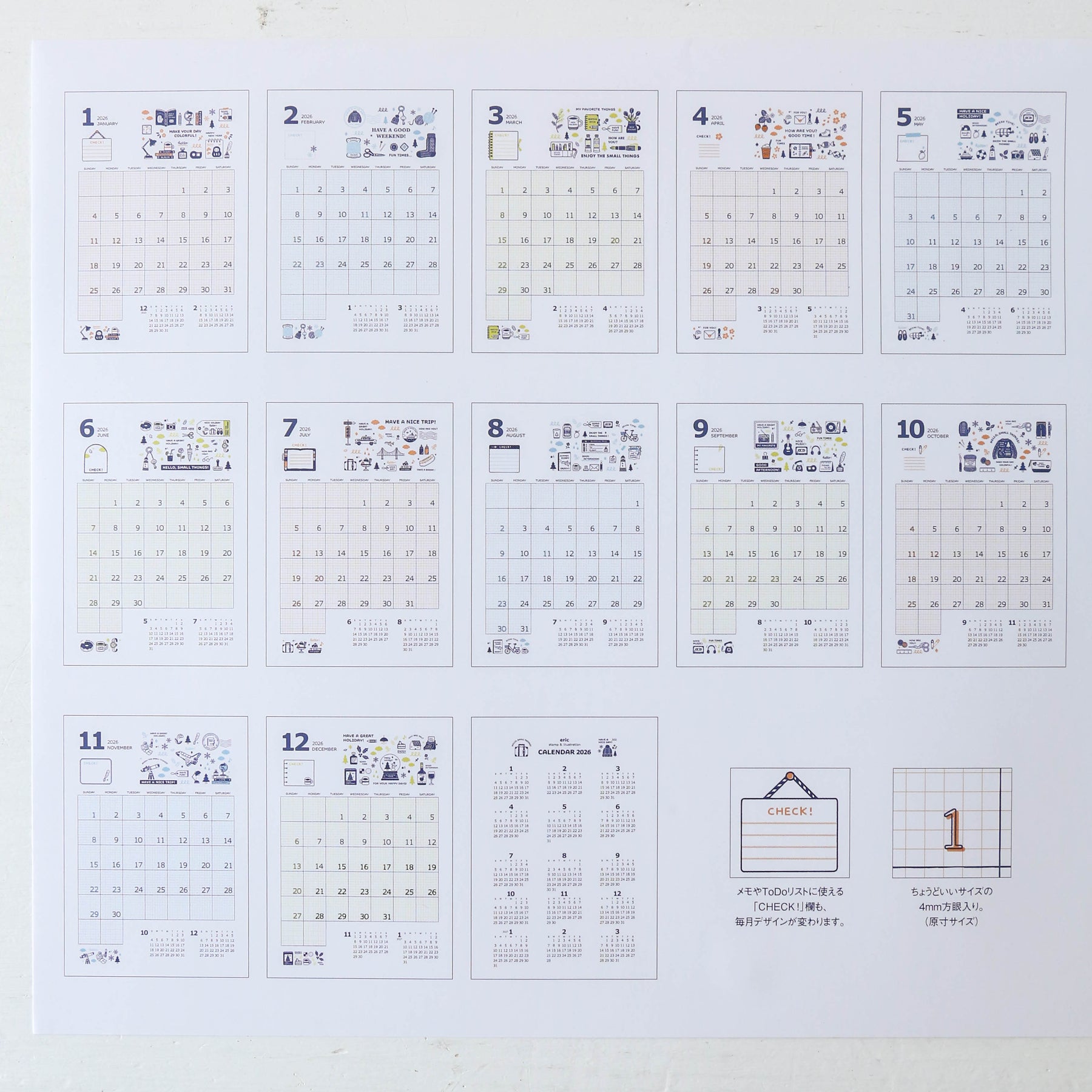 A monthly wall calendar designed by Eric Small Things.