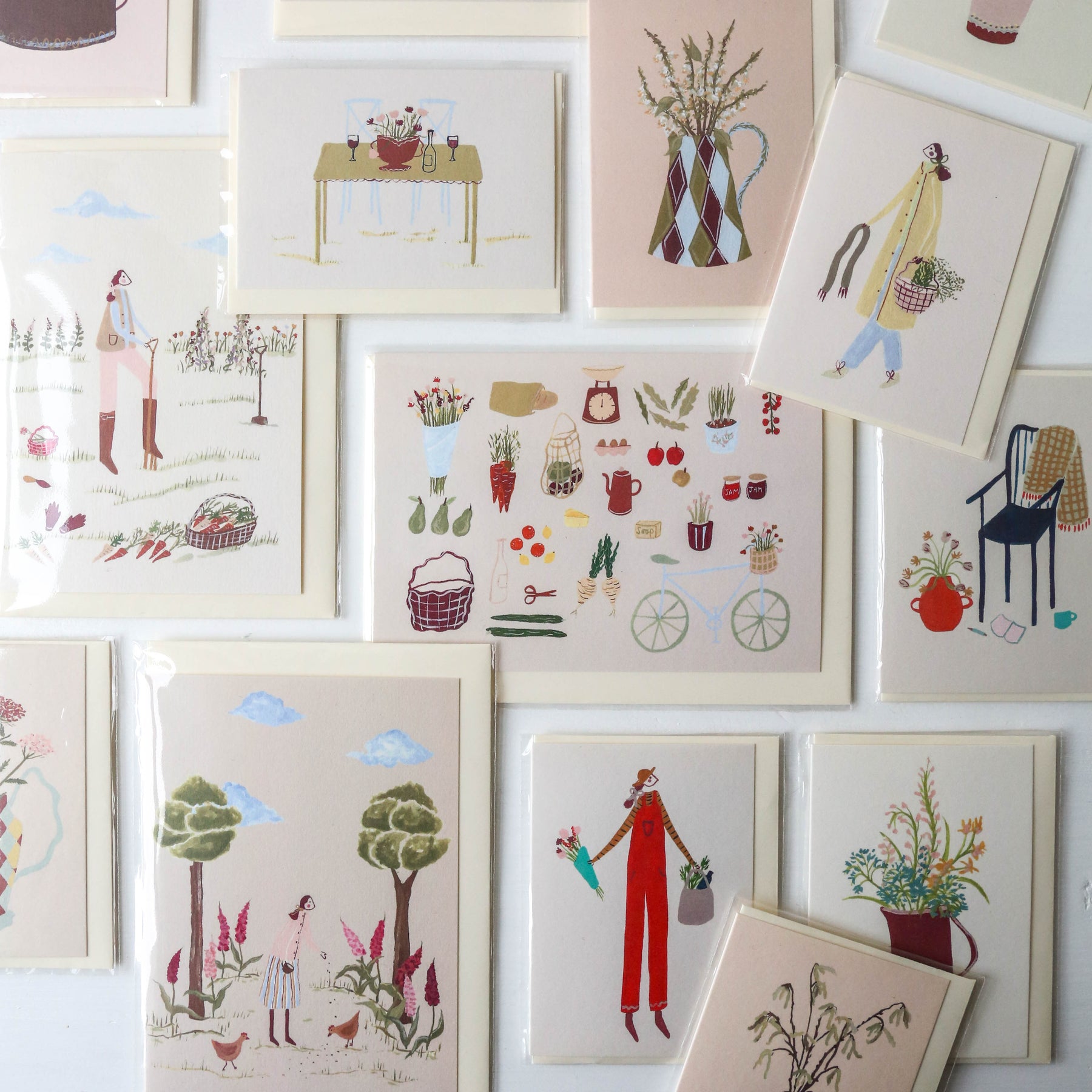 Harriet’s joyful greetings cards are painted in rich gouache, and printed using beautiful, eco-friendly materials, making each one special. She gathers inspiration from flowers and rural living, celebrating everyday activities and objects, finding appreciation in simplicity.