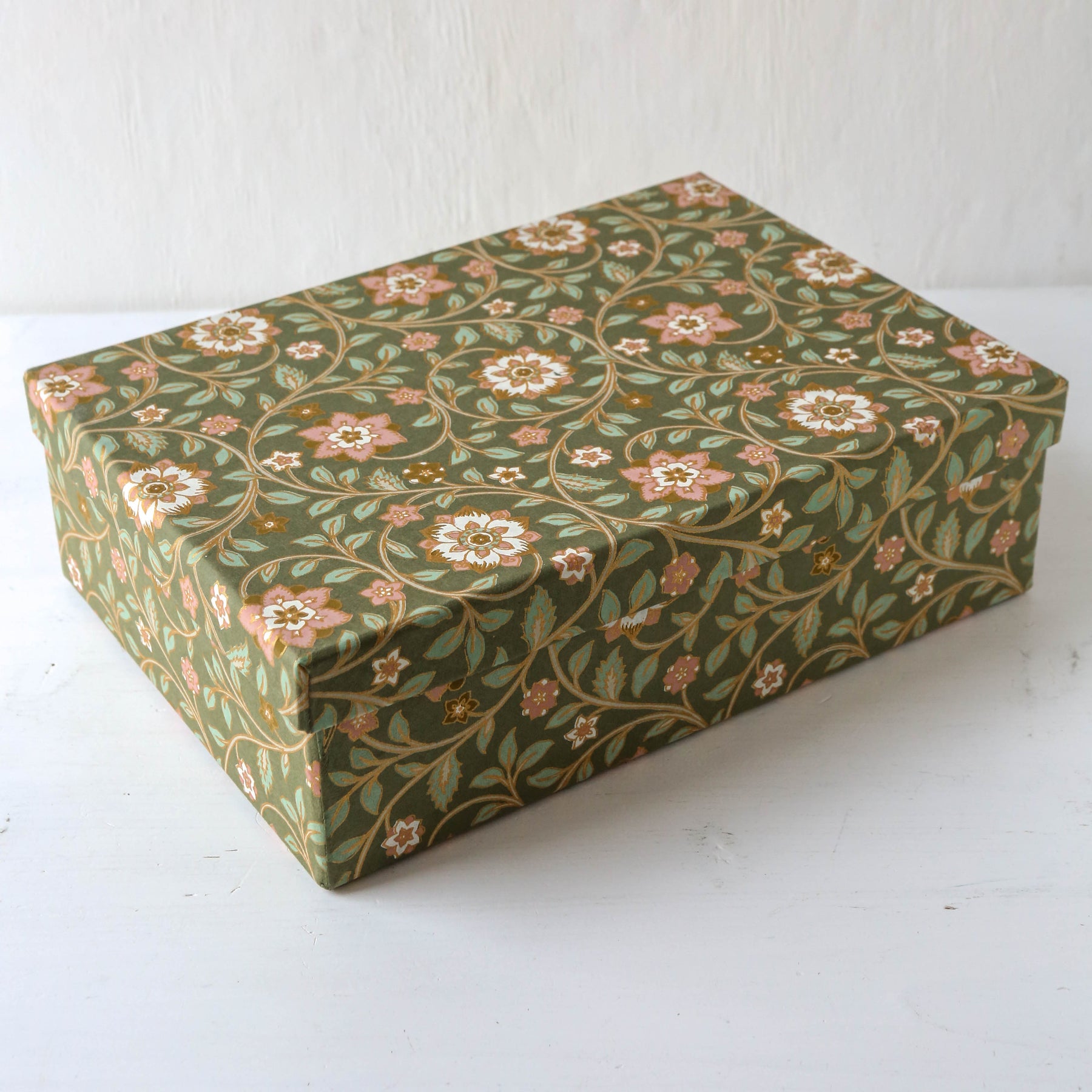 These beautiful paper covered boxes are excellent for tidying away bits and pieces on open shelving, or maybe for giving an extra special gift!