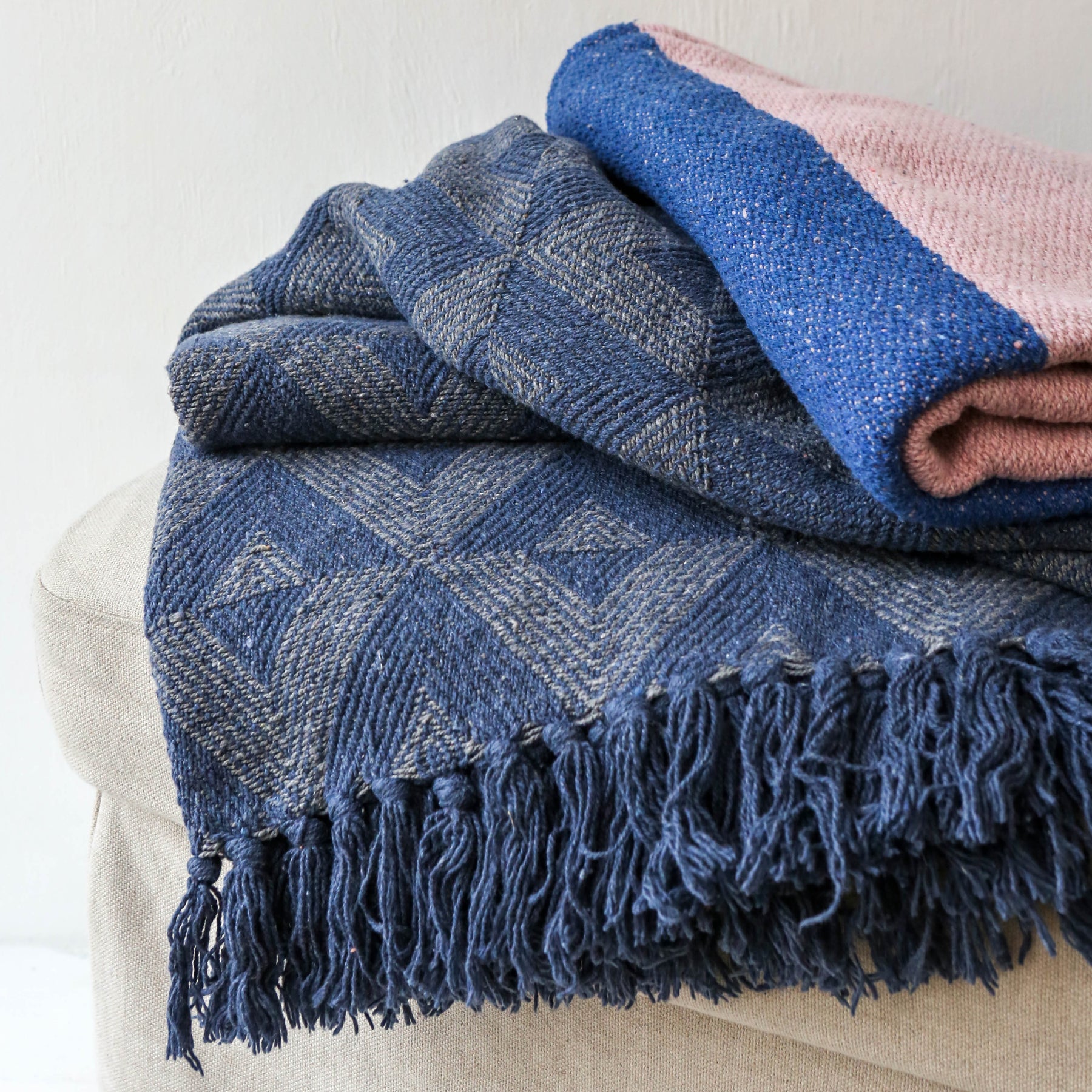 A lovely woven throw made from recycled material, perfect for cuddling up on the sofa.