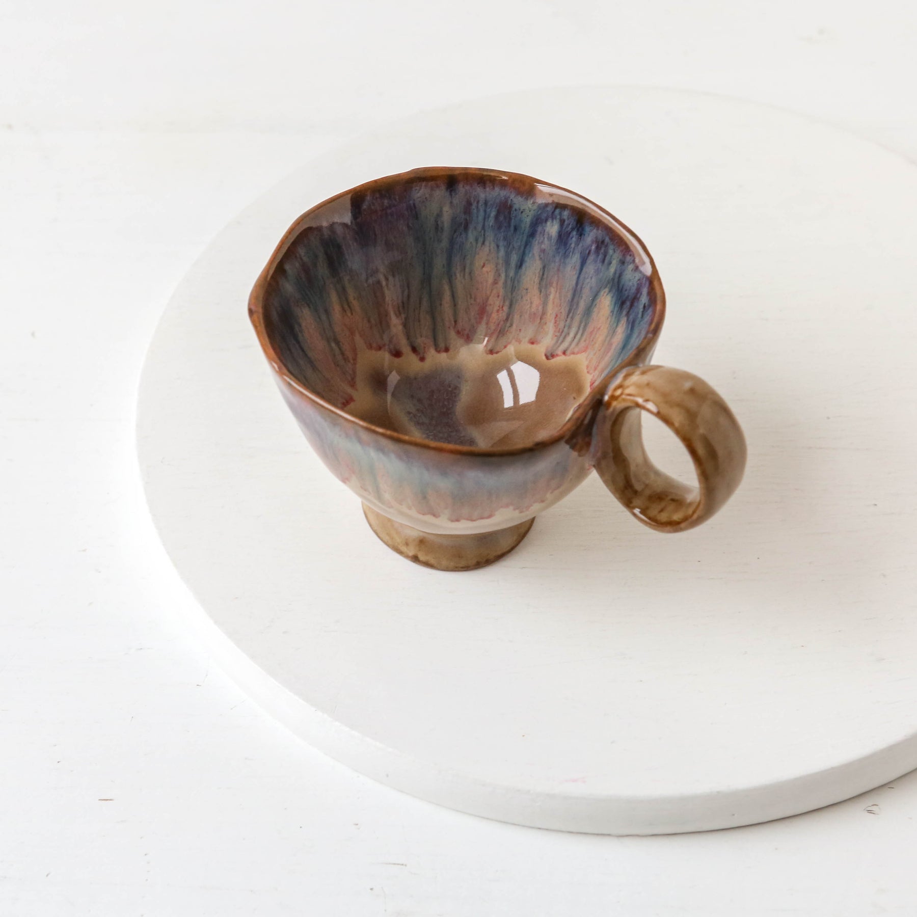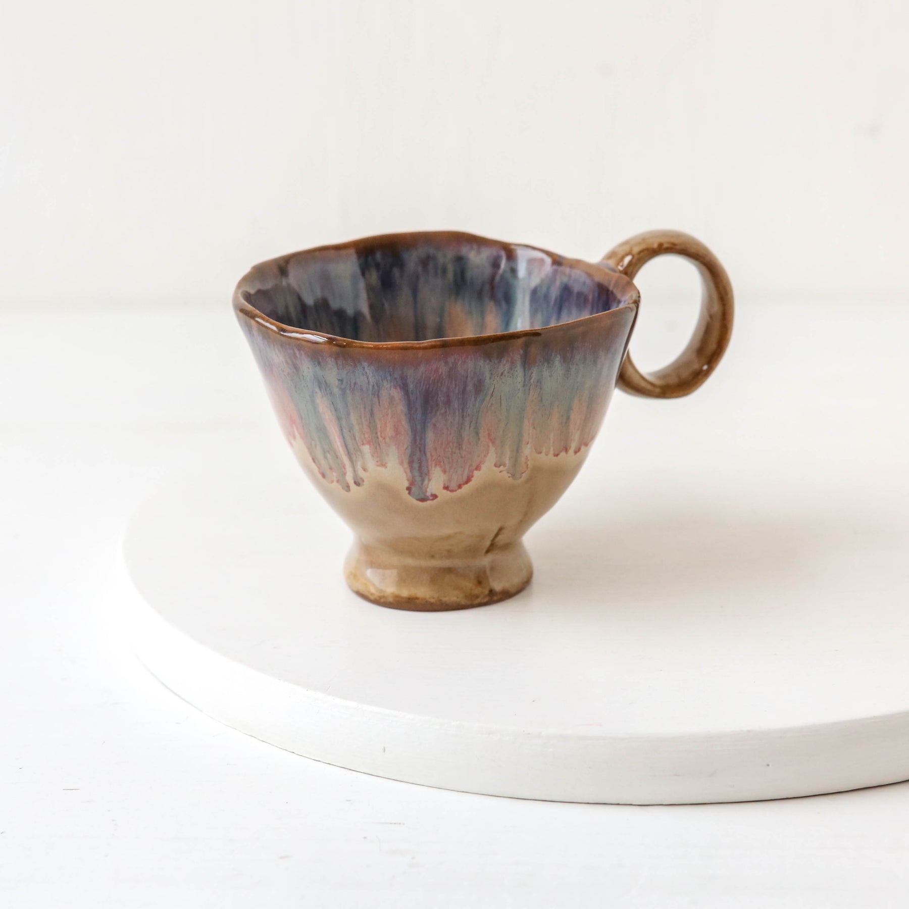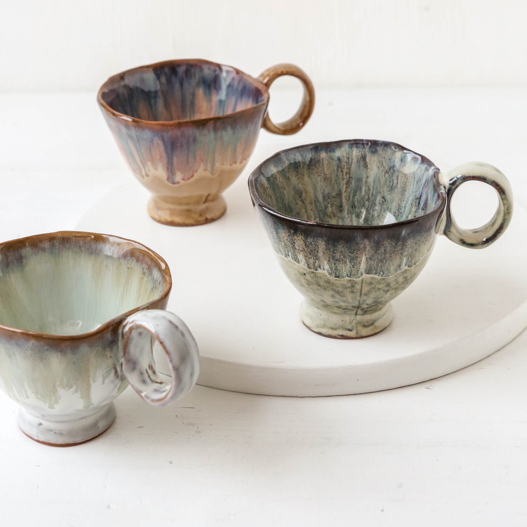 The handmade aspect and reactive glaze ensure that each cup is unique.