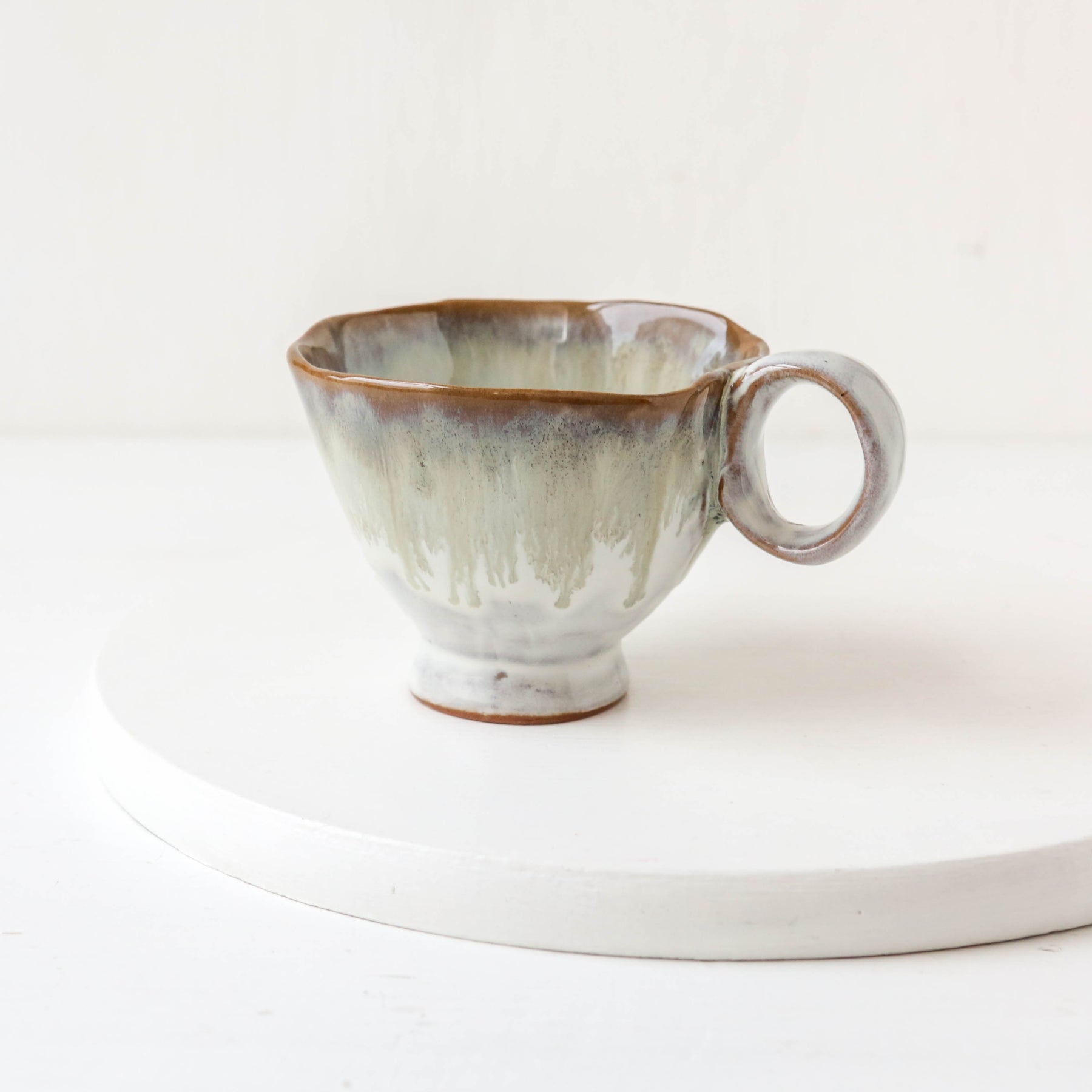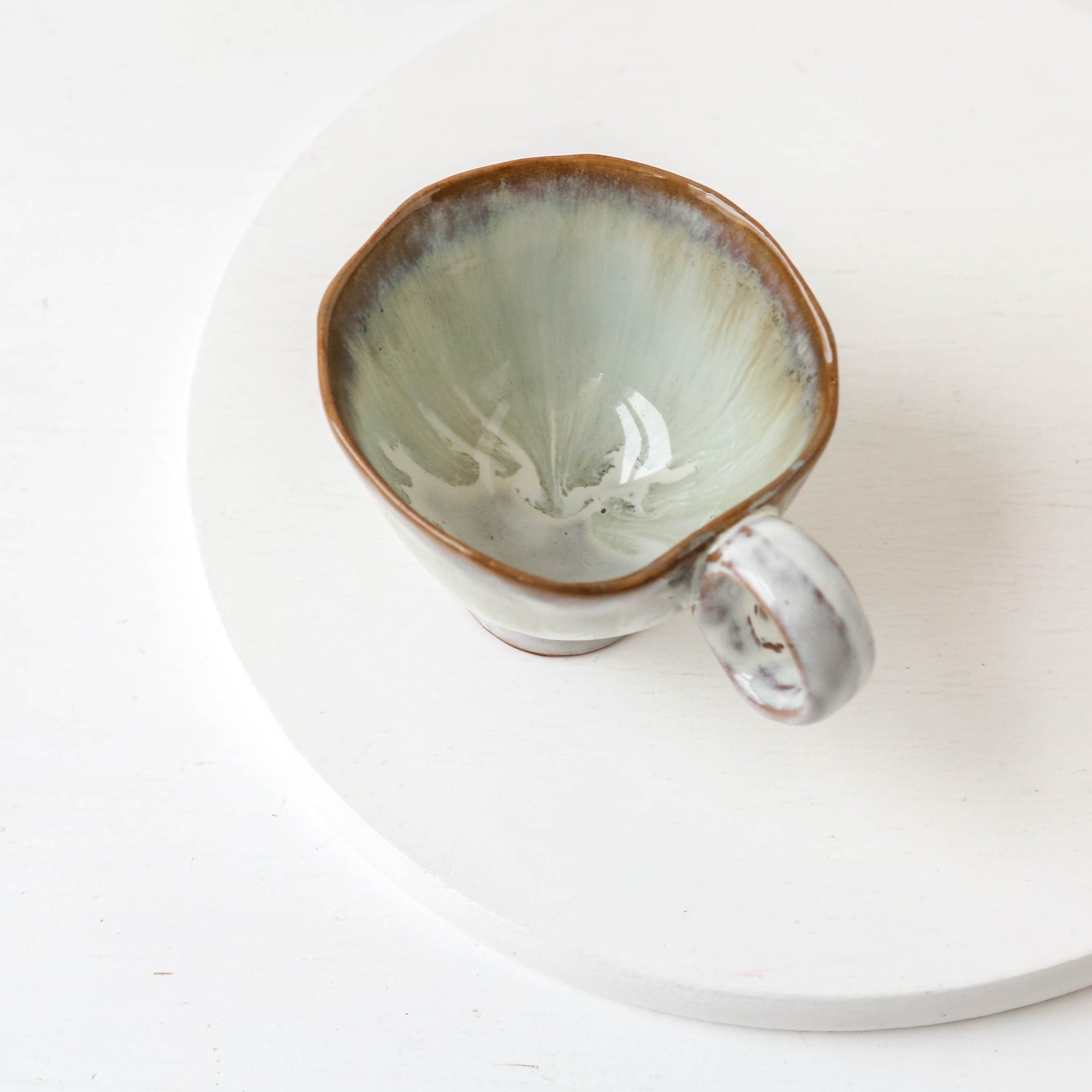 The handmade aspect and reactive glaze ensure that each cup is unique.