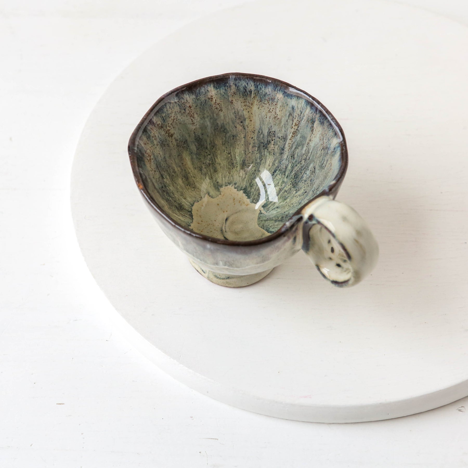 The handmade aspect and reactive glaze ensure that each cup is unique.