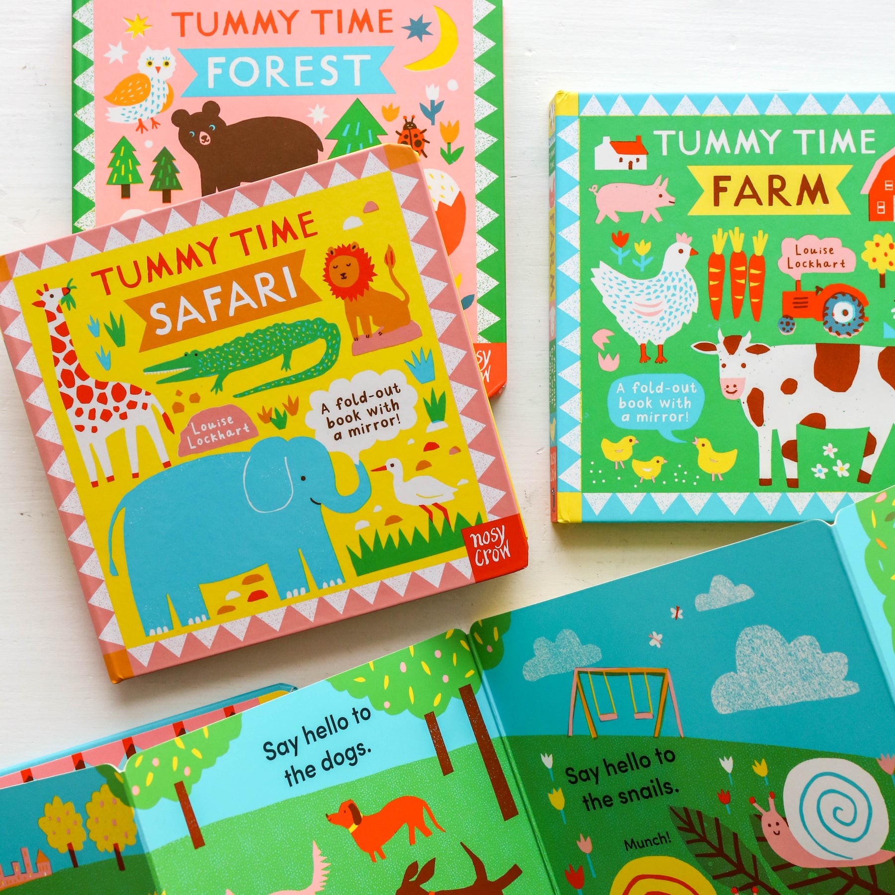 Make tummy time extra fun for little ones with this fold-out concertina book with a mirror! Say hello to the animals with a busy farm scene on one side and friendly animal faces and a mirror for babies to see themselves on the other. This dazzling board book is designed with tummy time in mind - a gentle exercise where a baby lies on their front to help strengthen their muscles and improve their head control. The fold-out format allows the book to be spread out in-front of a baby, while the bold colours stimulate their developing eyesight.