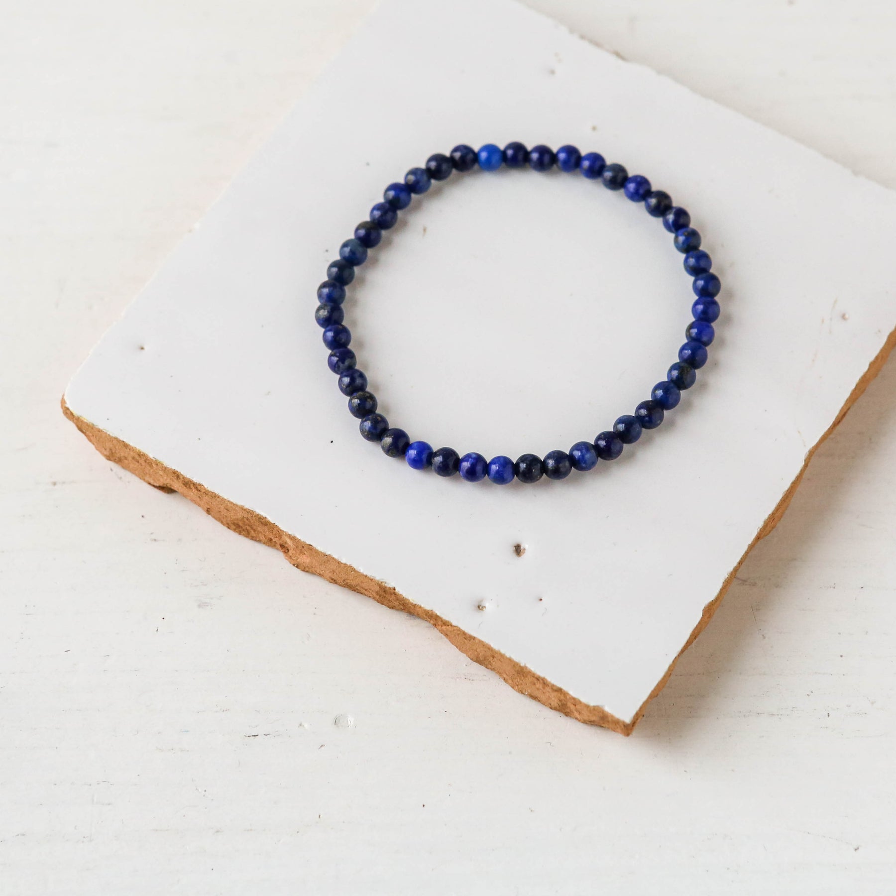 4mm gemstone beads, strung on to elastic so you can easily slip them on and off.