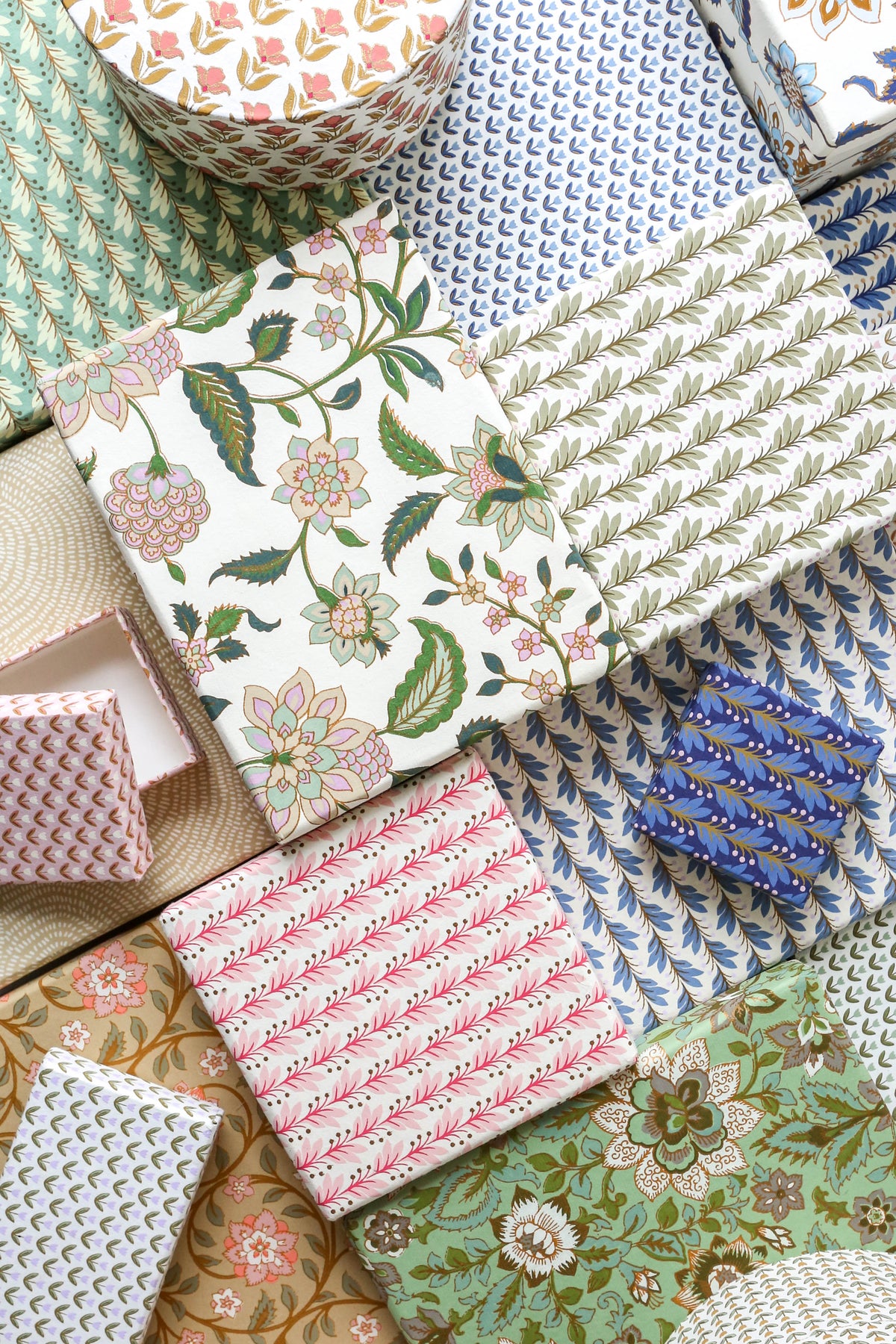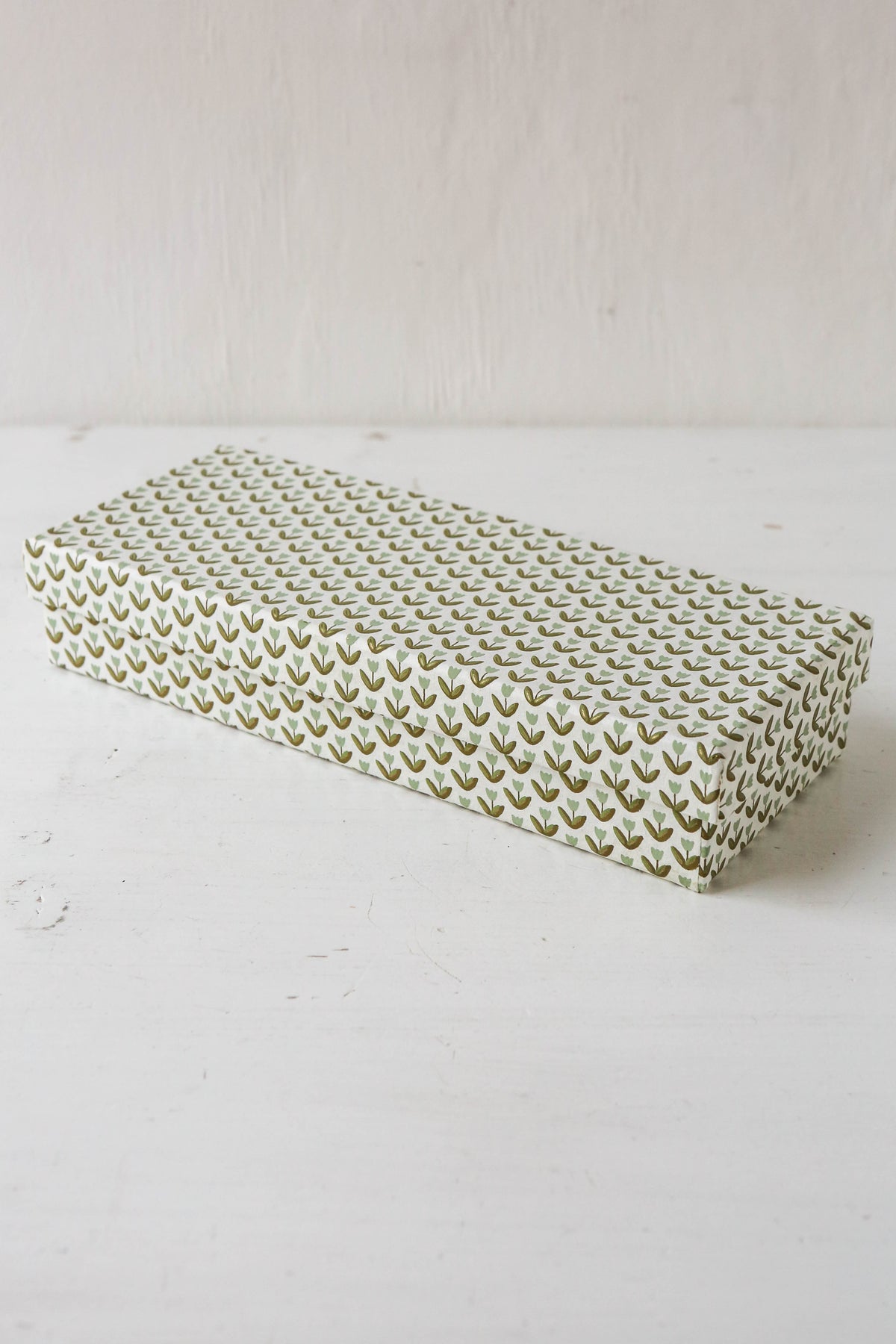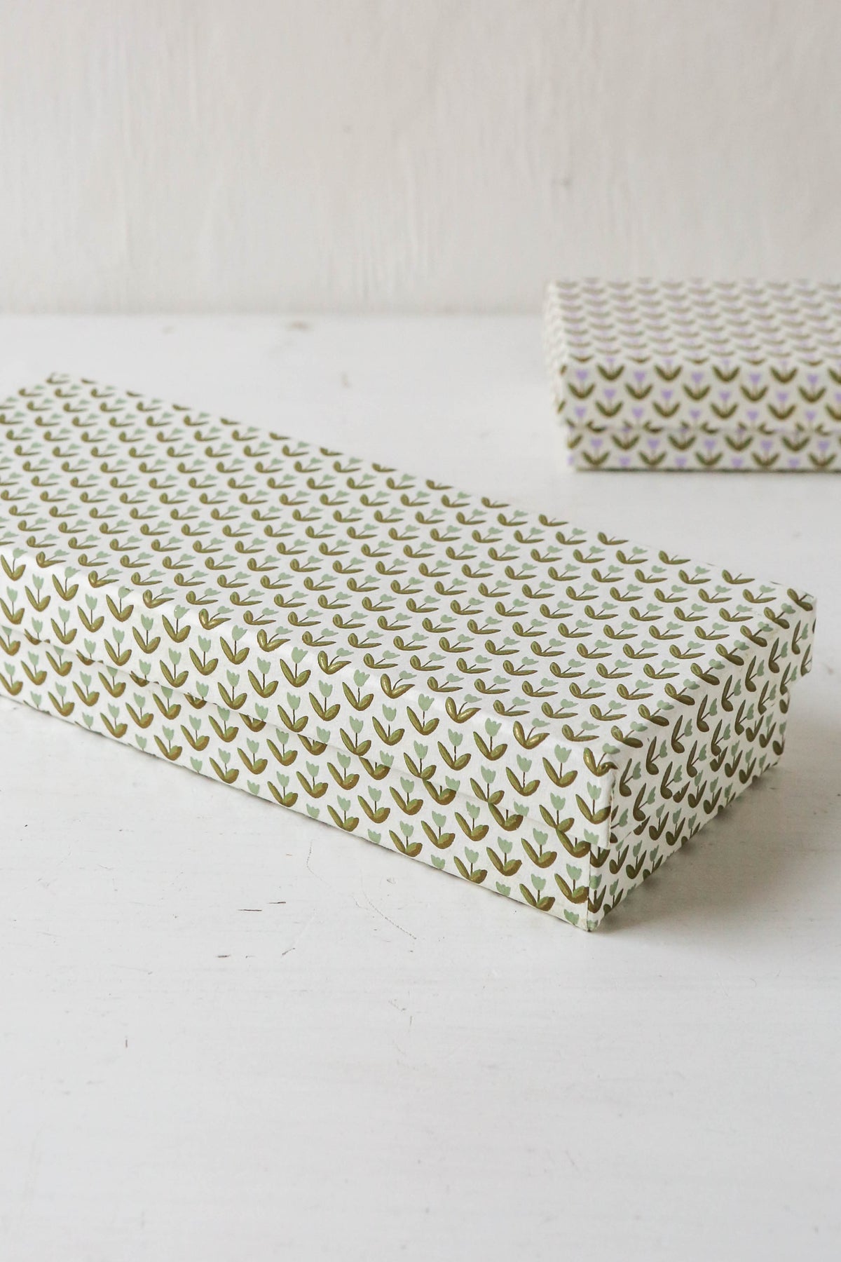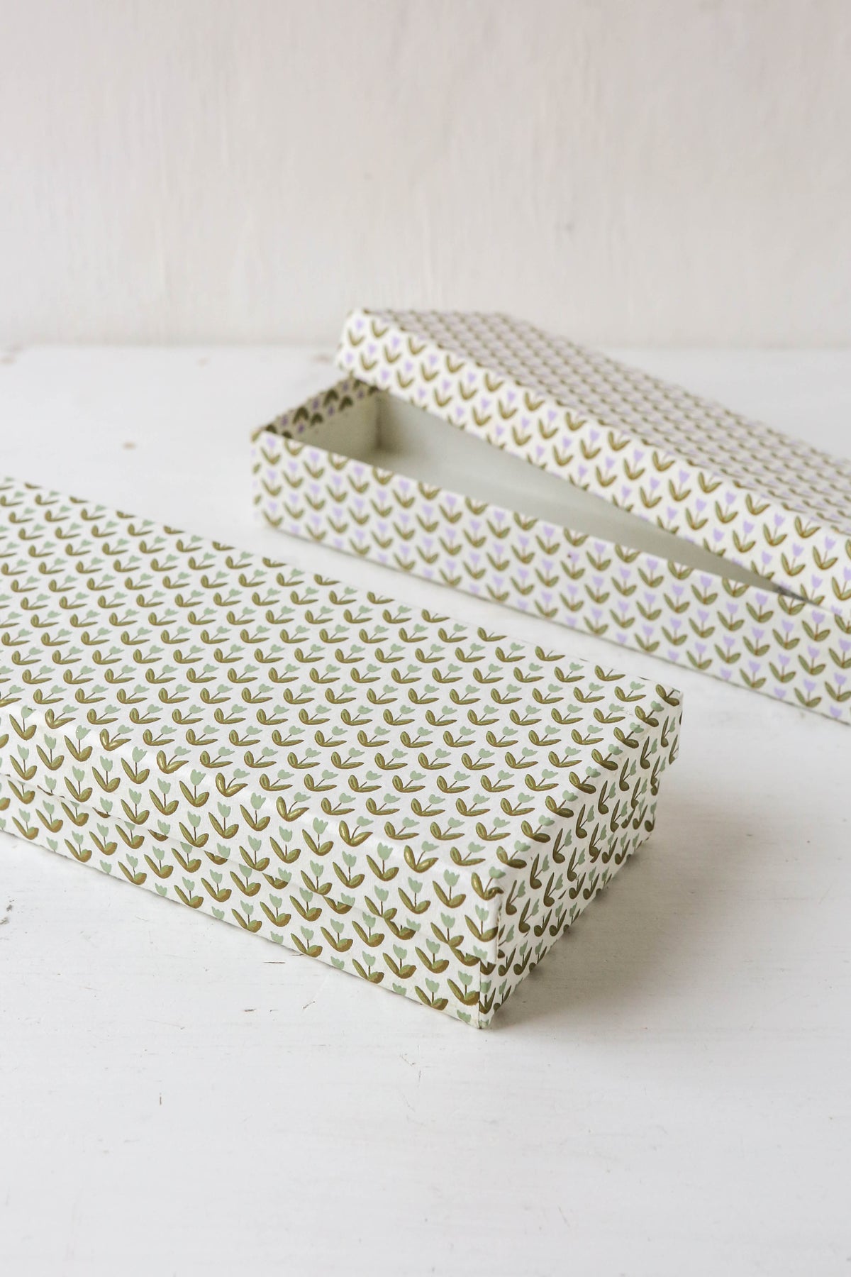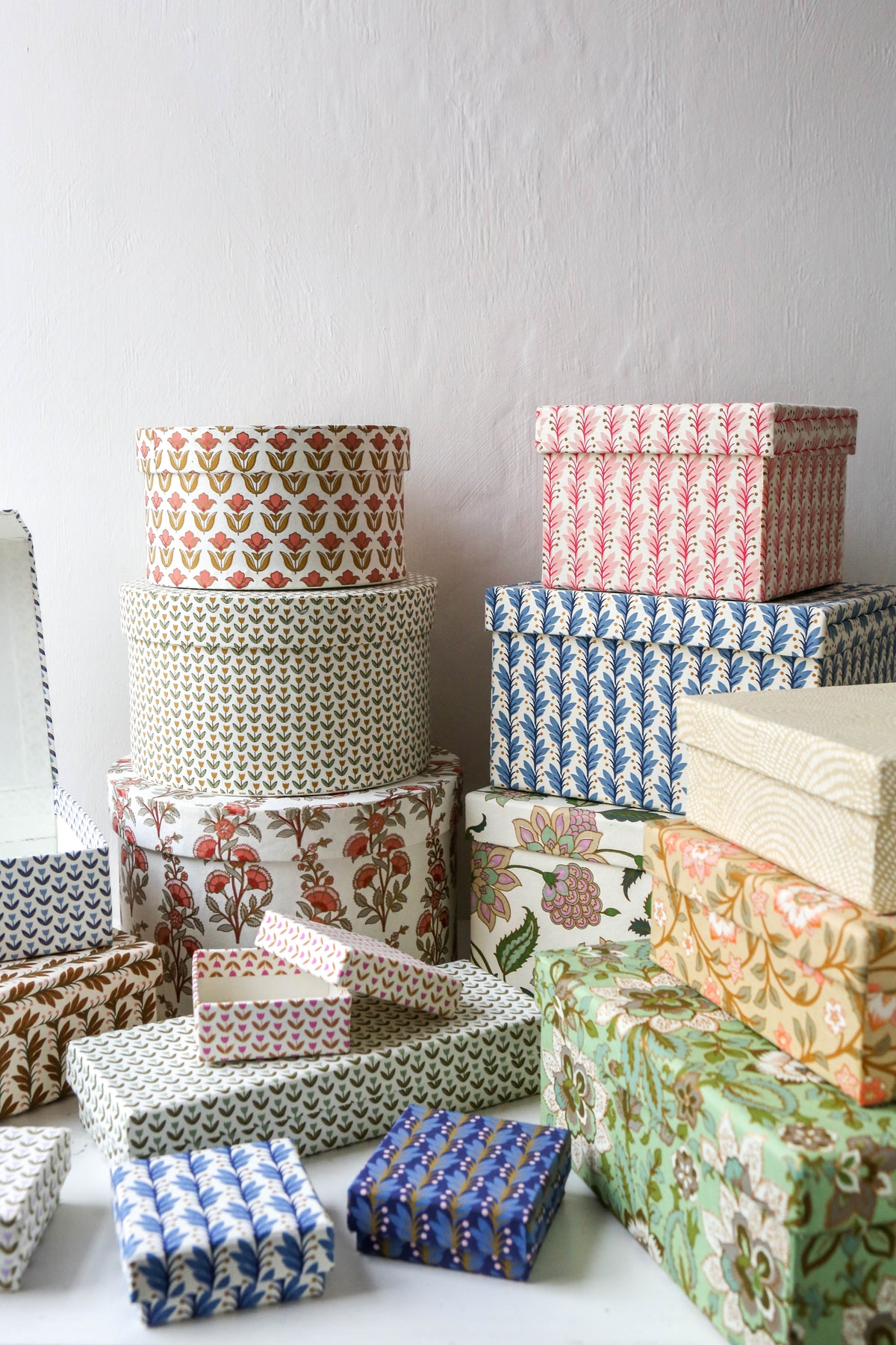 These beautiful paper covered boxes are excellent for tidying away bits and pieces on open shelving, or maybe for giving an extra special gift! This size also makes a perfect pencil box.
