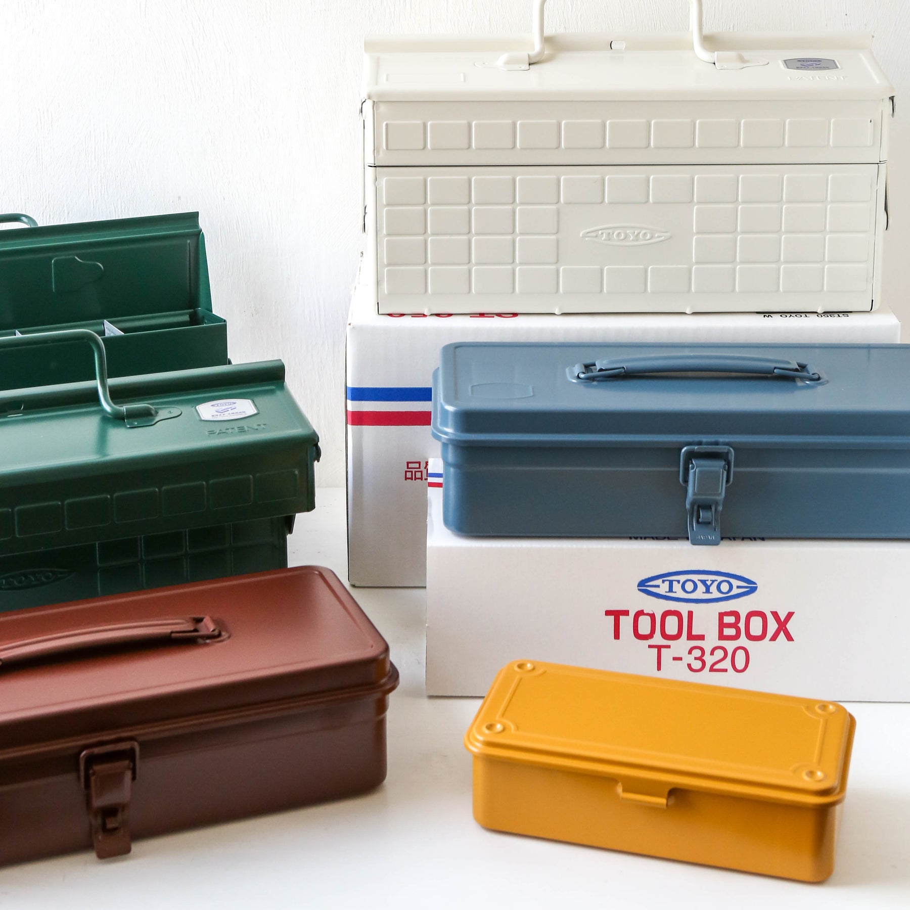 This robust steel case is designed to safely store all your bits and bobs, from tools to stationery. Crafted from one thin sheet of solid plate metal using a drawing press technique, resulting in the classic tool box.