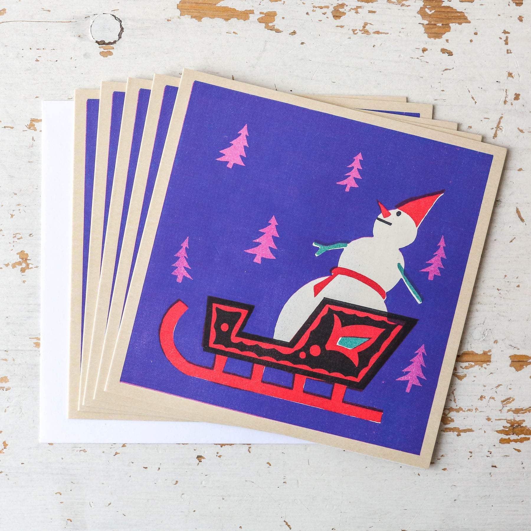 A pack of 5 Christmas cards, featuring a vintage Russian Matchbox Label from 1961.