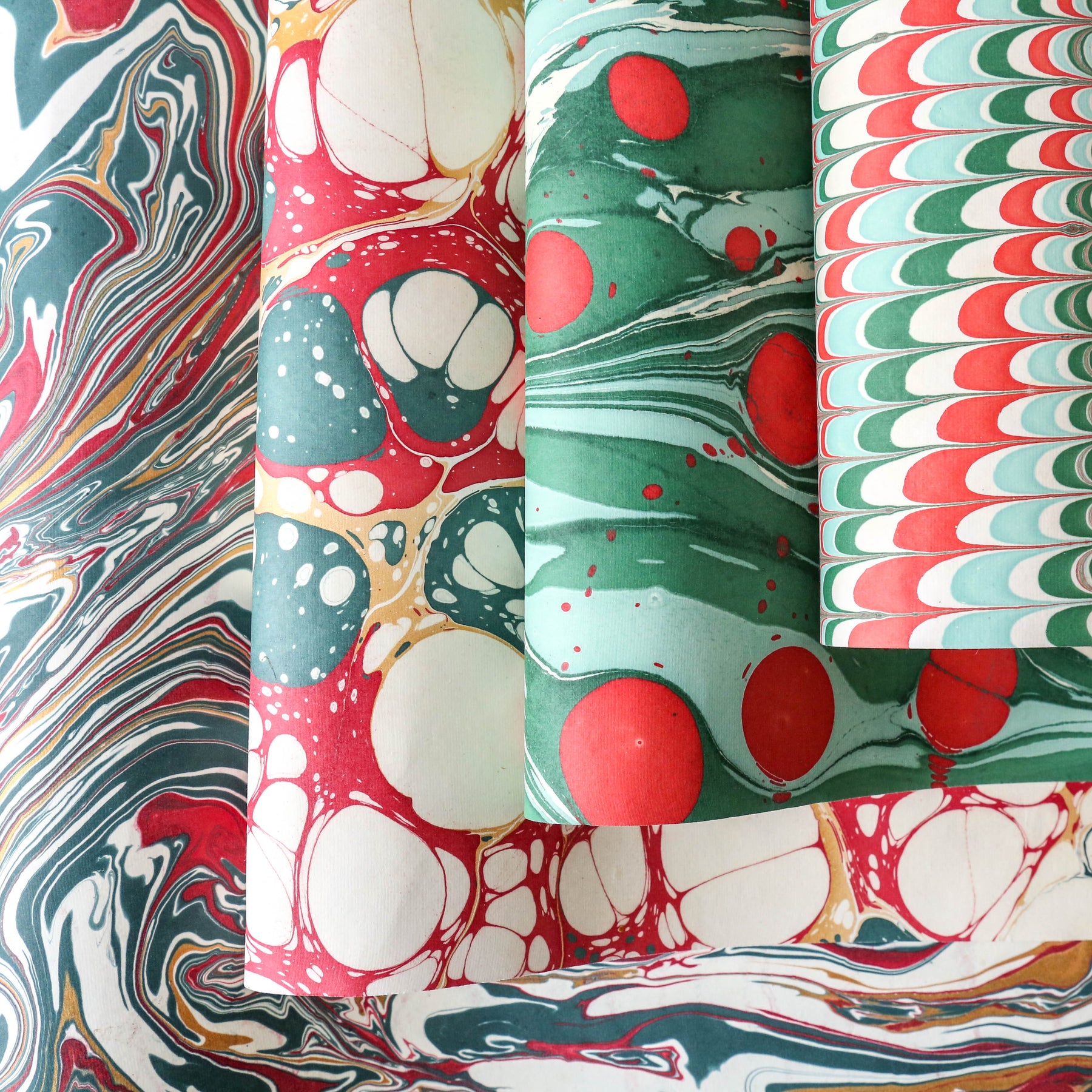 Every sheet is hand marbled by a skilled artisan on to luxurious cotton handmade papers. They are not screen printed or digitally mass-produced. This beautiful free-flowing hand marbled design is a favourite within Paper Mirchi's marbled collection and is suitable for any occasion. These marbled papers are also very popular for art and craft uses, origami and bookbinding.