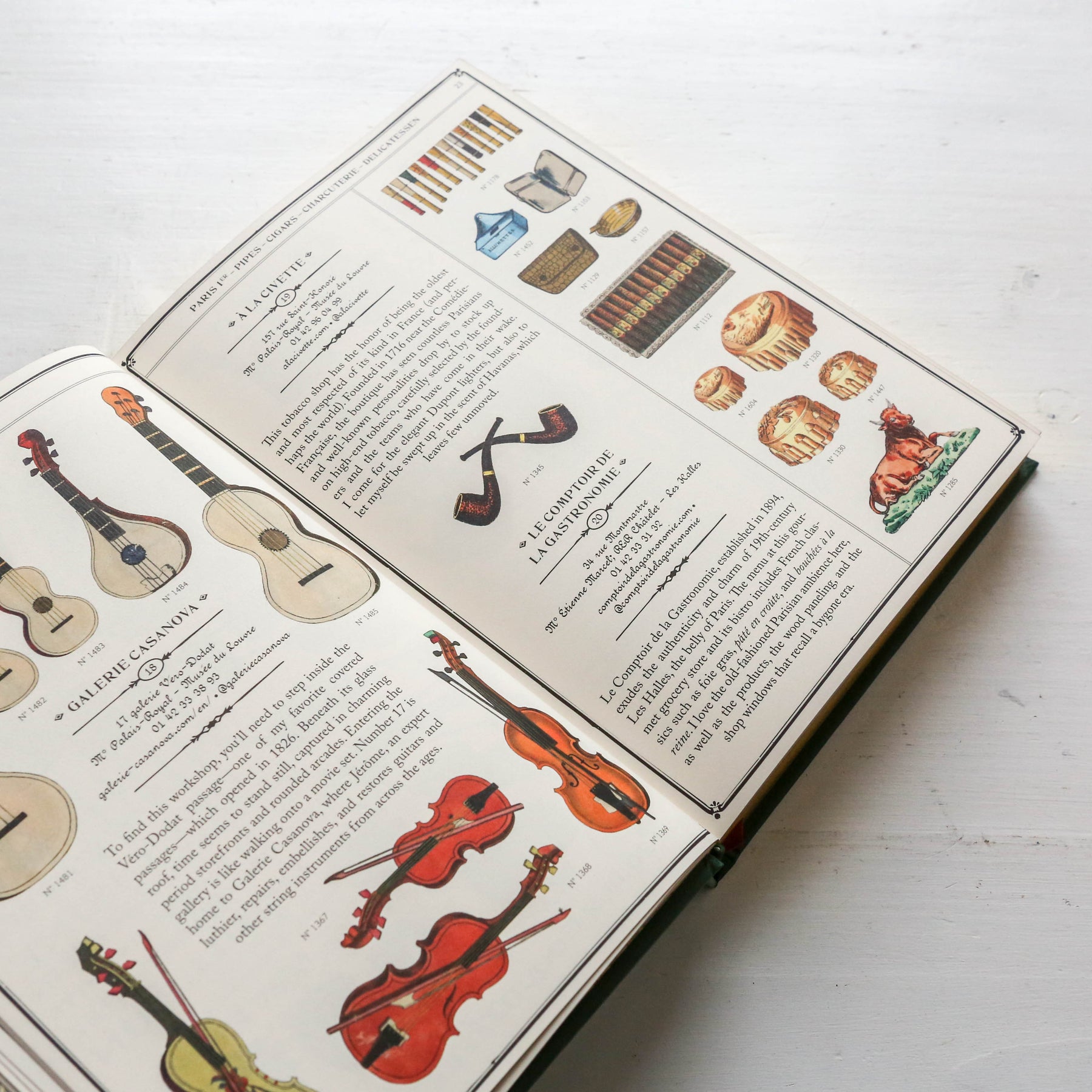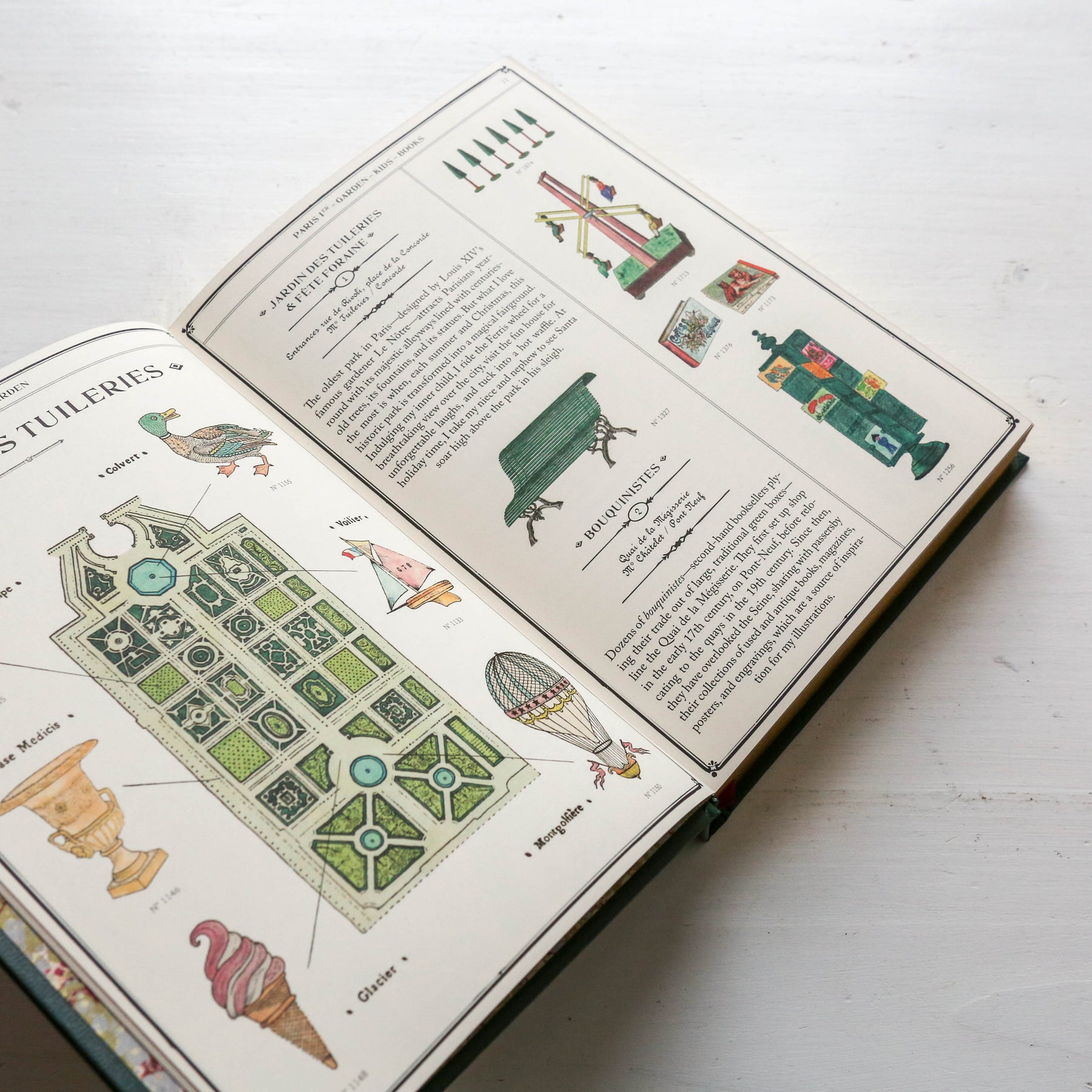 To discover every beguiling corner of Paris like a local, follow Marin Montagut to his favourite places; in operation for thirty years or more, these addresses define what makes the city so captivating. His adorable watercolours, accompanied by drawings from antique mercantile stock lists, bring each location to life. Reminiscent of a golden-age-of-travel guide, this book features gilt edging, foil stamping, a leatherette cover, marbled endpapers, a ribbon page marker, and maps.'