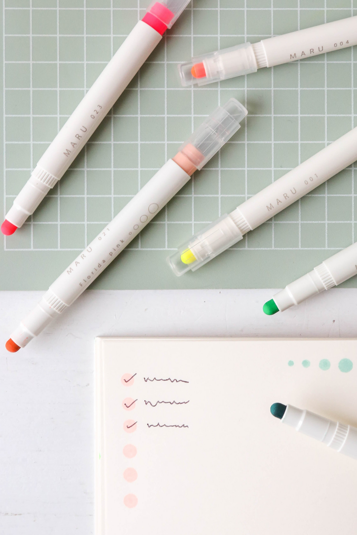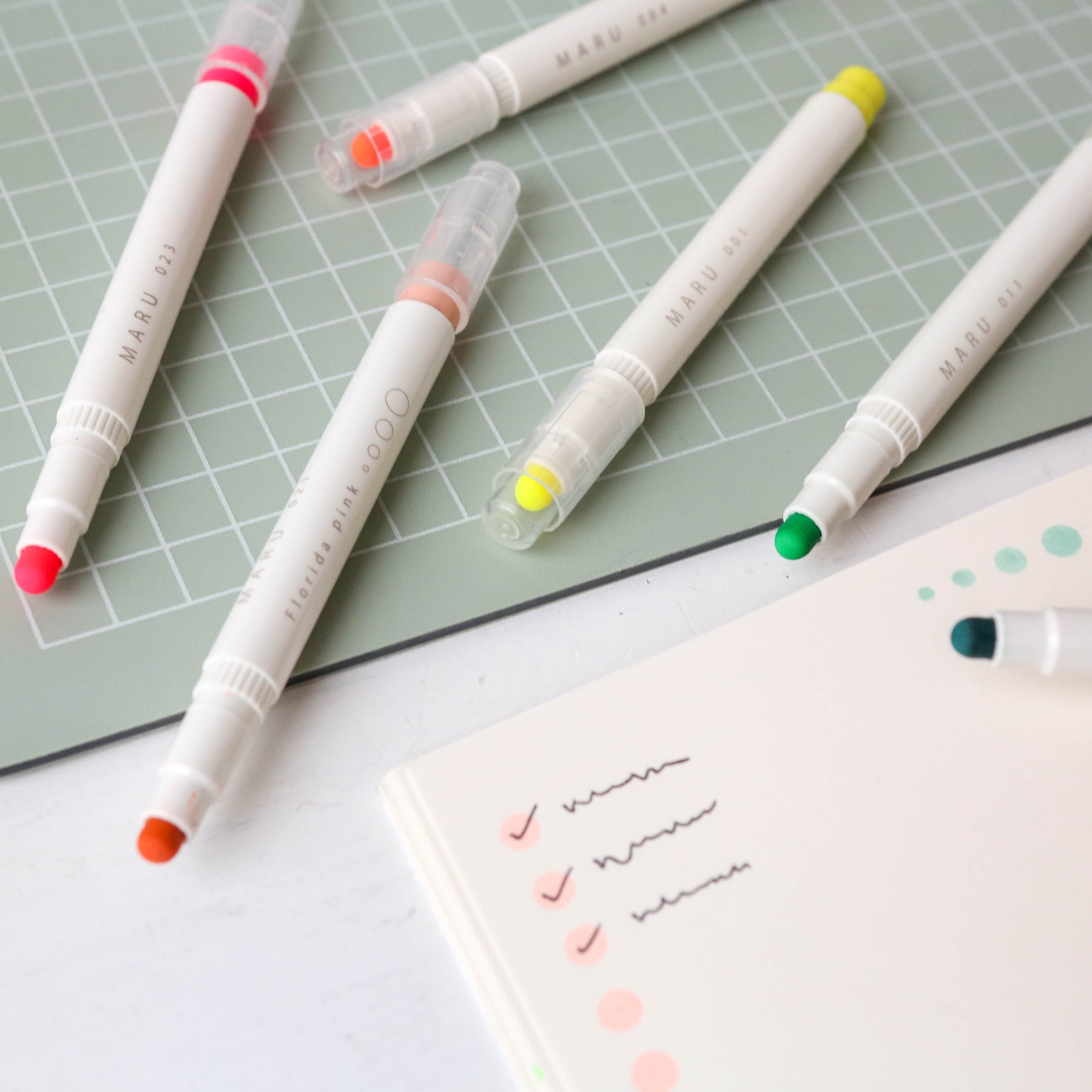 Highlighter style pens with a fun rounded nib, which makes a very satisfying DOT. Perfect for creating a checklist or highlighting a point. Pair with one of the super fine liners for a perfect pencil case duo.