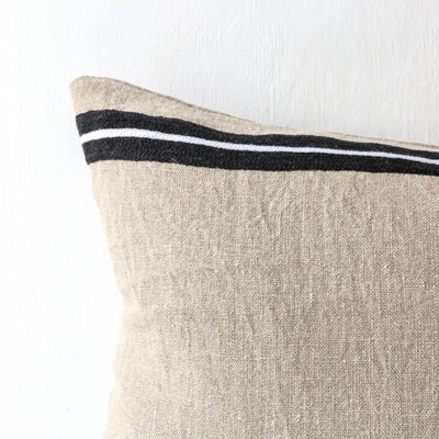 A 100% linen cushion cover with contrasting cotton embroidered stripes.
