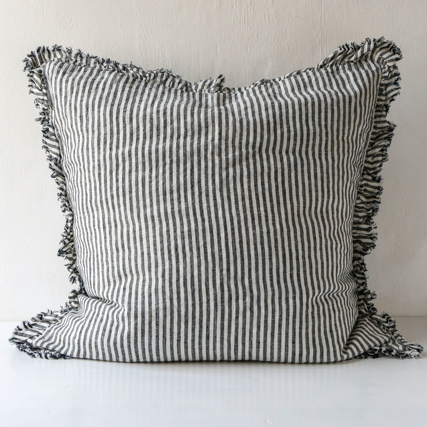 Ruffle Cushion Cover - Charcoal Stripe
