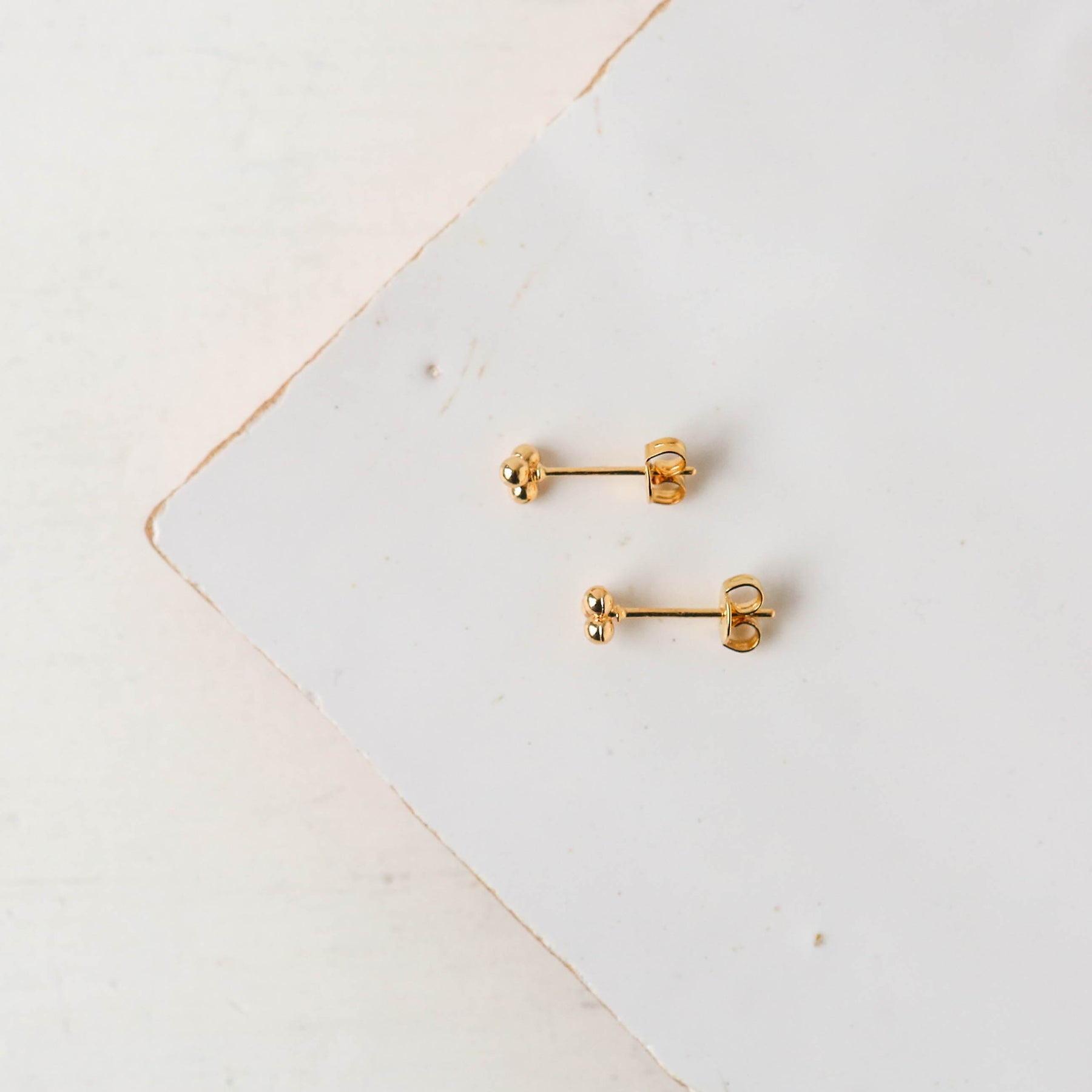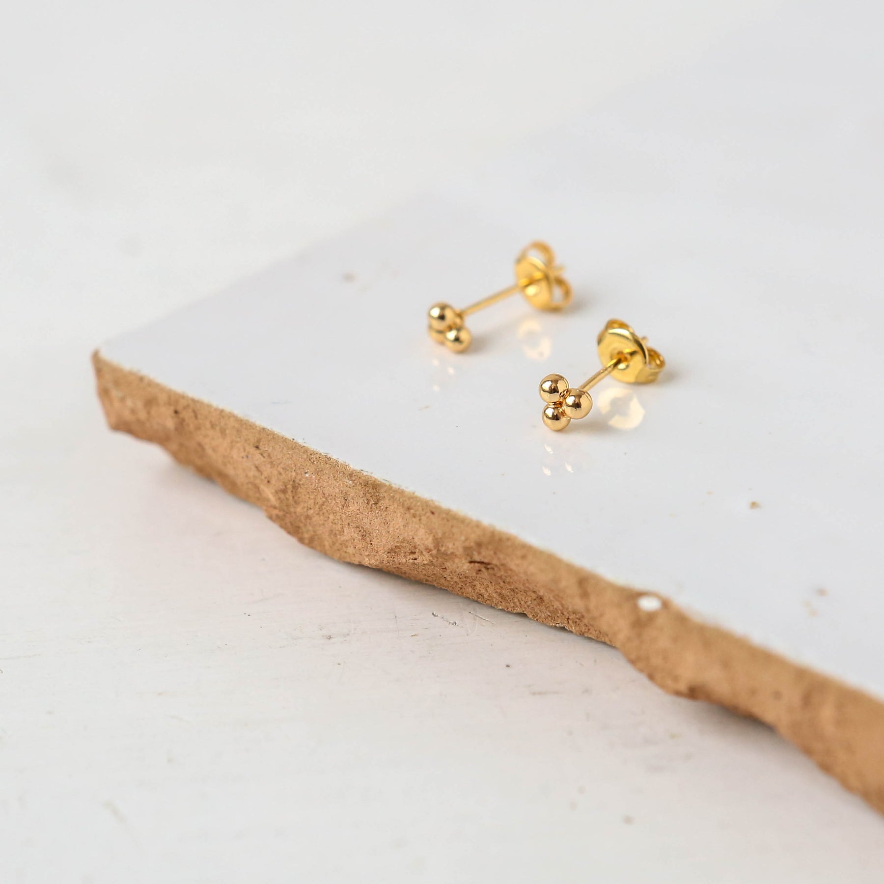 Simple 18k gold stud earrings, featuring a trio of tiny bobbles.