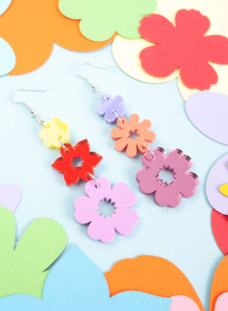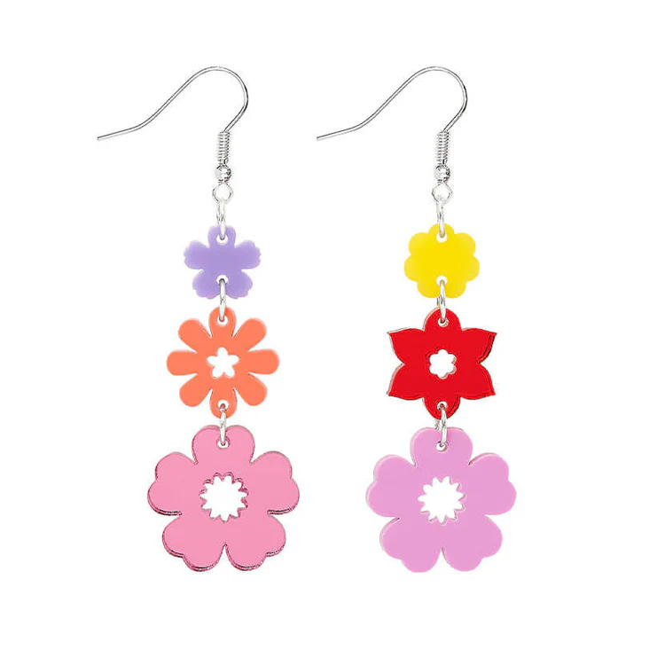 It's giving flower power with our Festival of Flowers Earrings. A trio of mismatched acrylic flowers are hand-linked to create your go-to graduating floral earrings. Taking you from summer days to brightening up winter moments: these versatile garlands pop in mirror pink, glossy yellow and lustrous lilac laser cut acrylic. Style with statement collars and oversized scrunchies for a go-to girlie look.