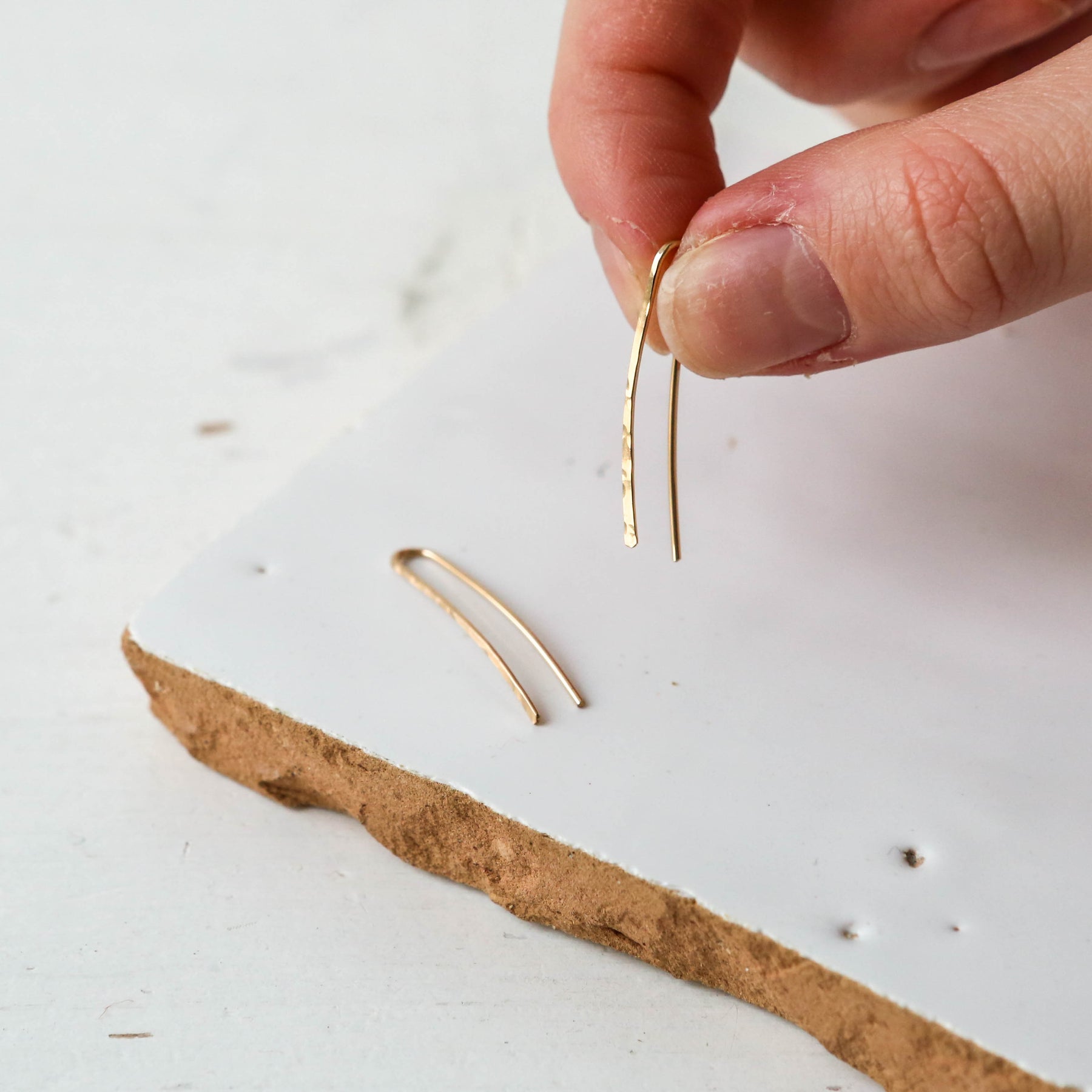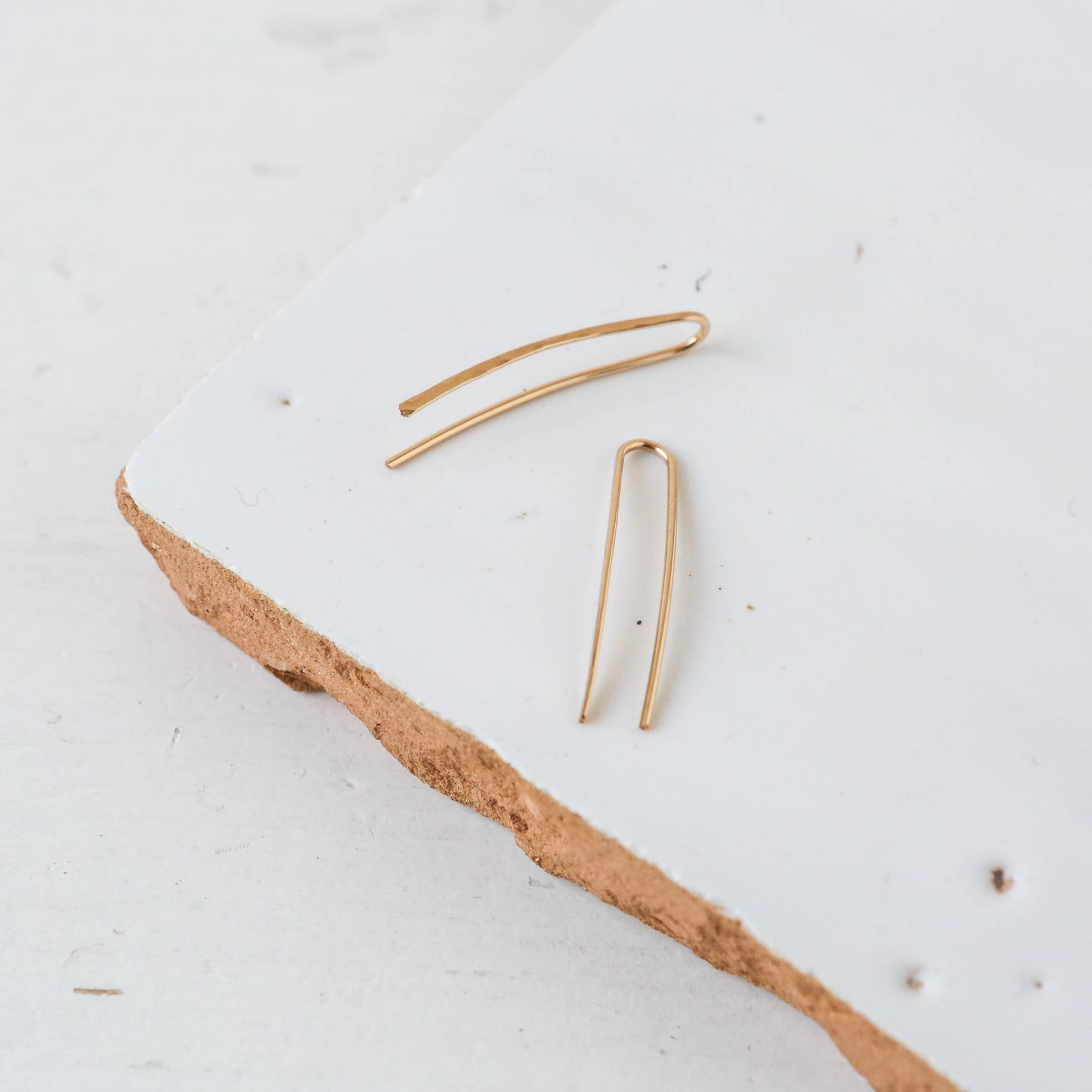 Gold Fill fuses Pure Gold to an underling brass metal. The process uses 100 times more gold than the cheaper alternative of plating. It is a great option for sensitive skin and will hold its luster without chipping or tarnishing. Wears like Solid gold.