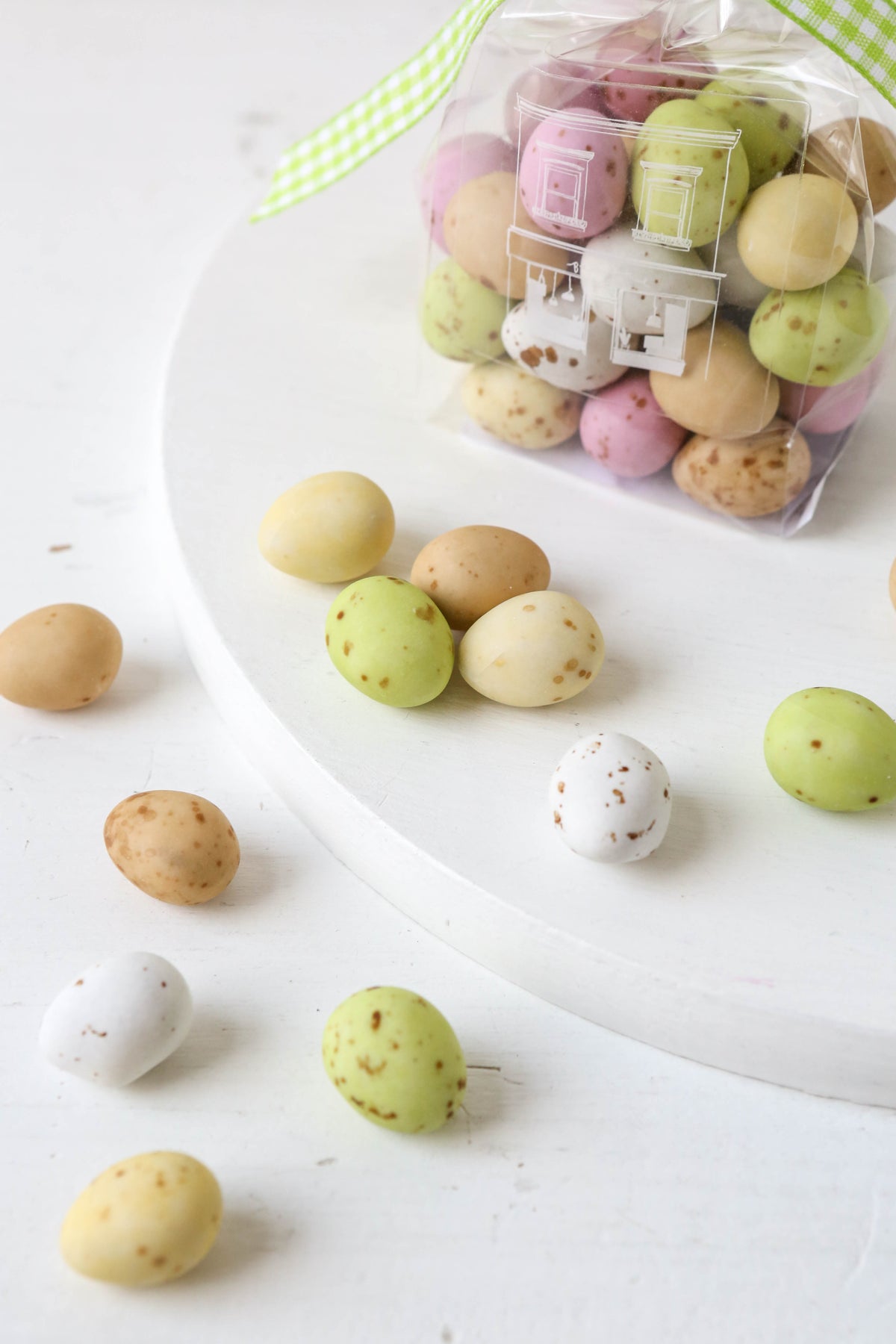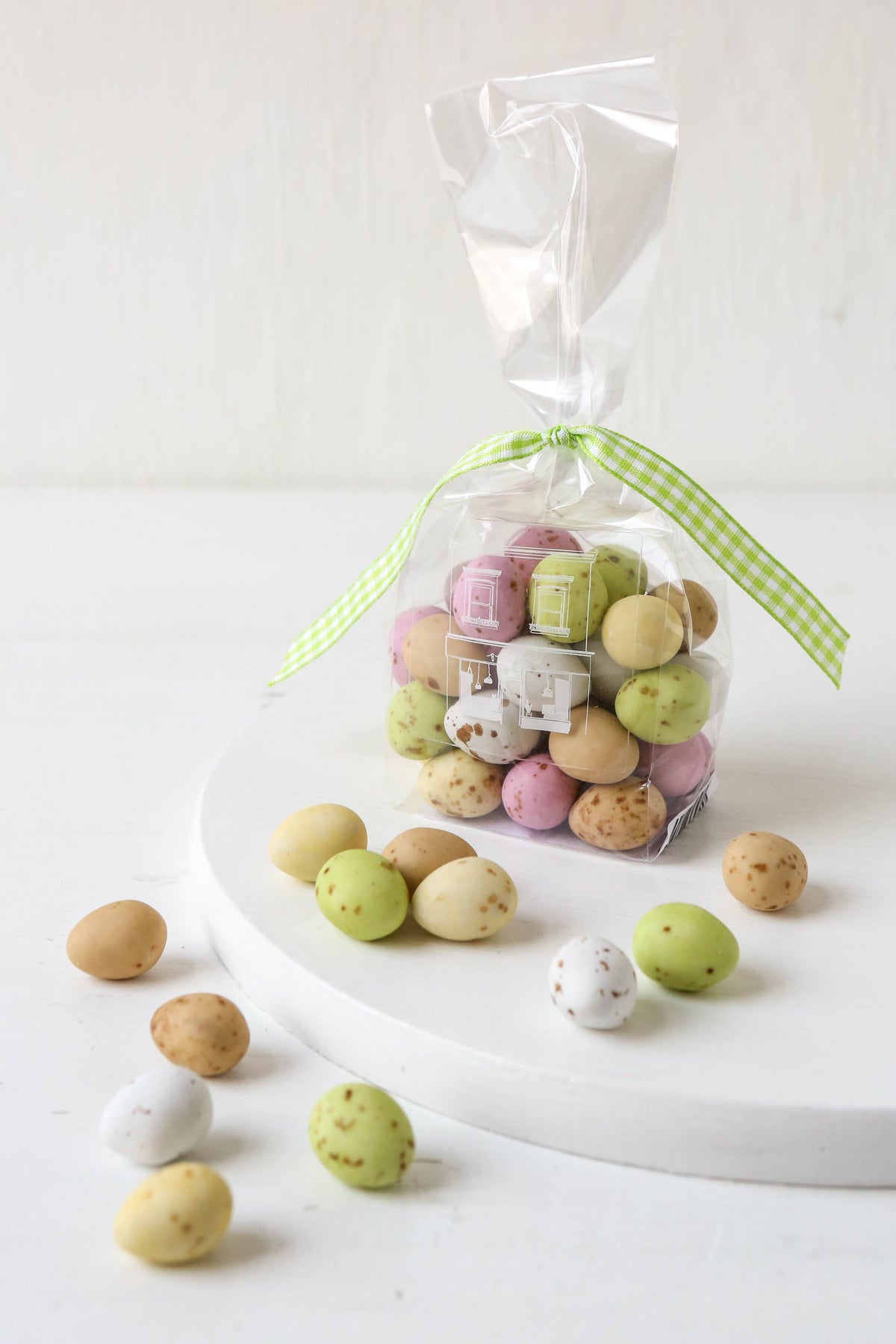 Milk Chocolate 70% (Sugar, Cocoa Butter, Skimmed Milk Powder, Cocoa Mass, Whey Powder (Milk), Lactose (Milk), Butter Oil (Milk), Emulsifier (Soya Lecithin), Flavouring), Sugar, Glazing Agent (Gum Arabic), Rice Starch, Malt Barley Extract, Colours (Anthocyanins, Carotenes, Curcumin), Spirulina Concentrate.