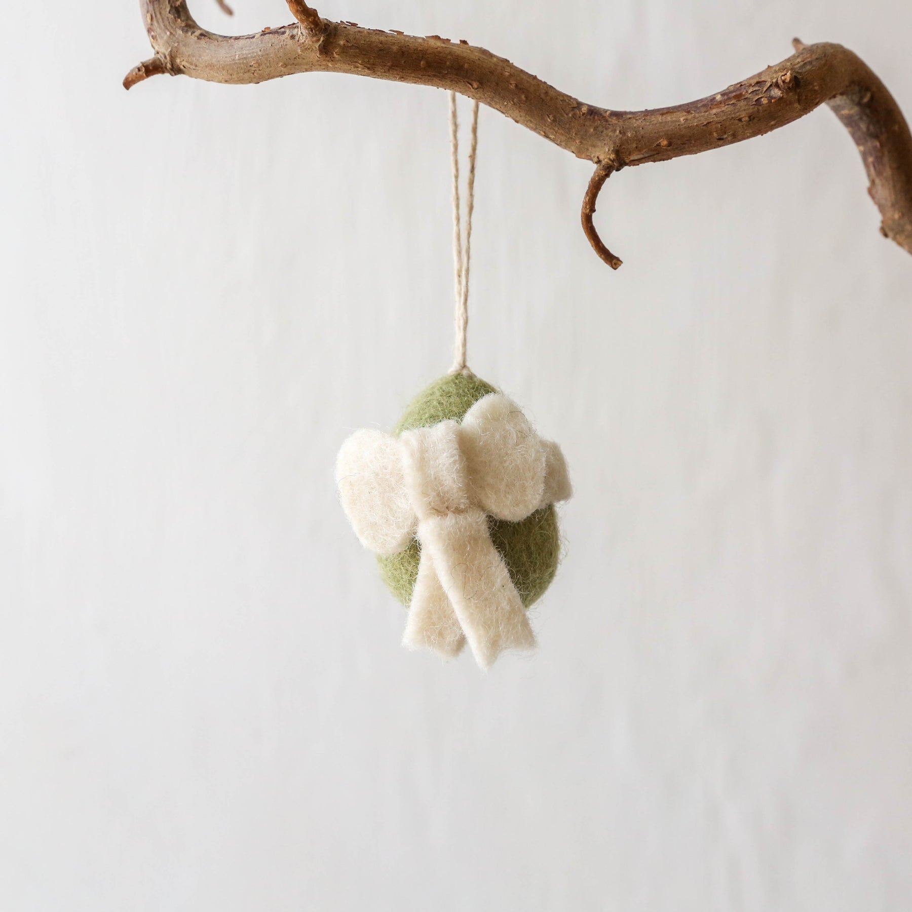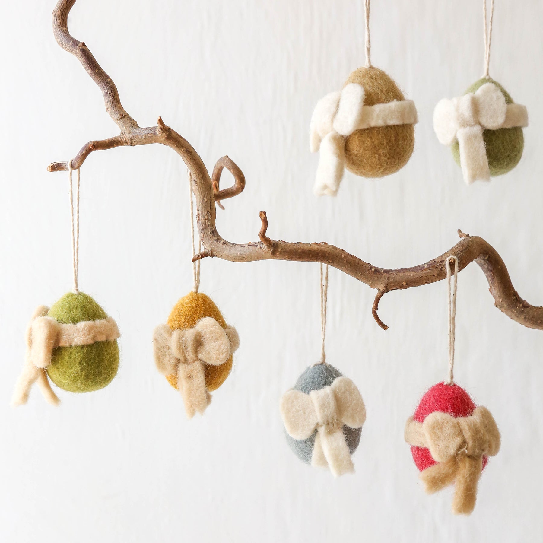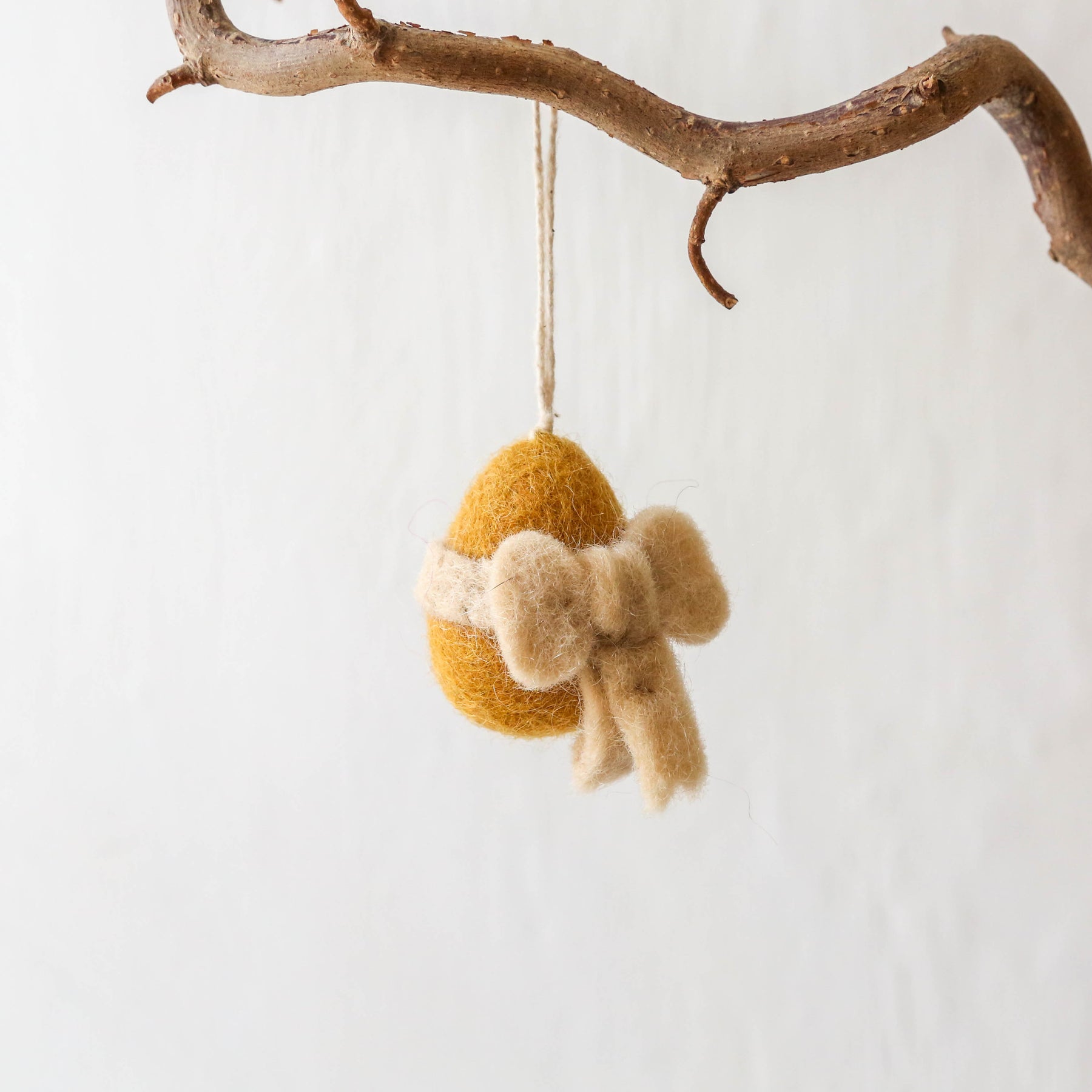 These hanging decorations are made from hand felted wool. With a cotton string loop to hang on an Easter tree or a spring display.
