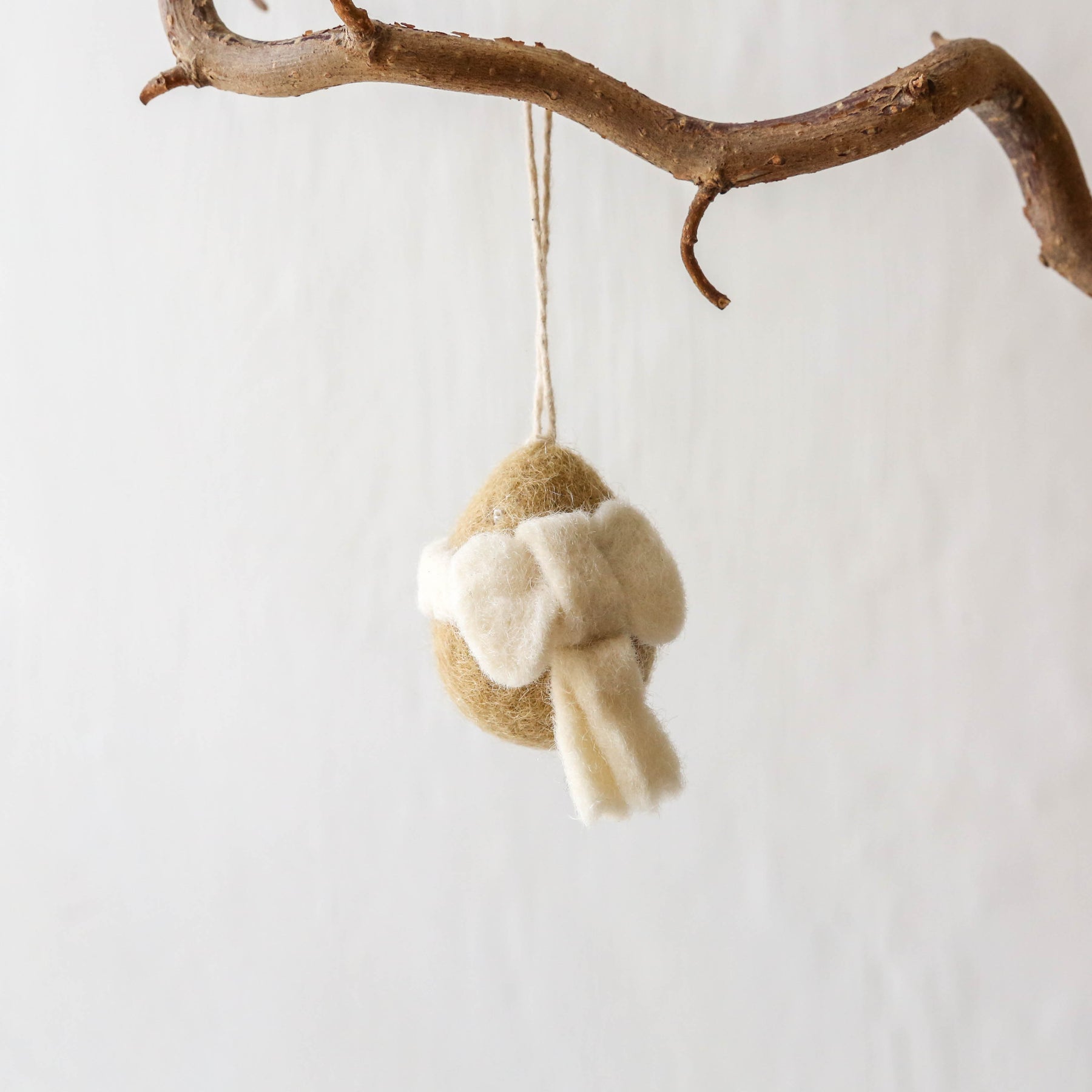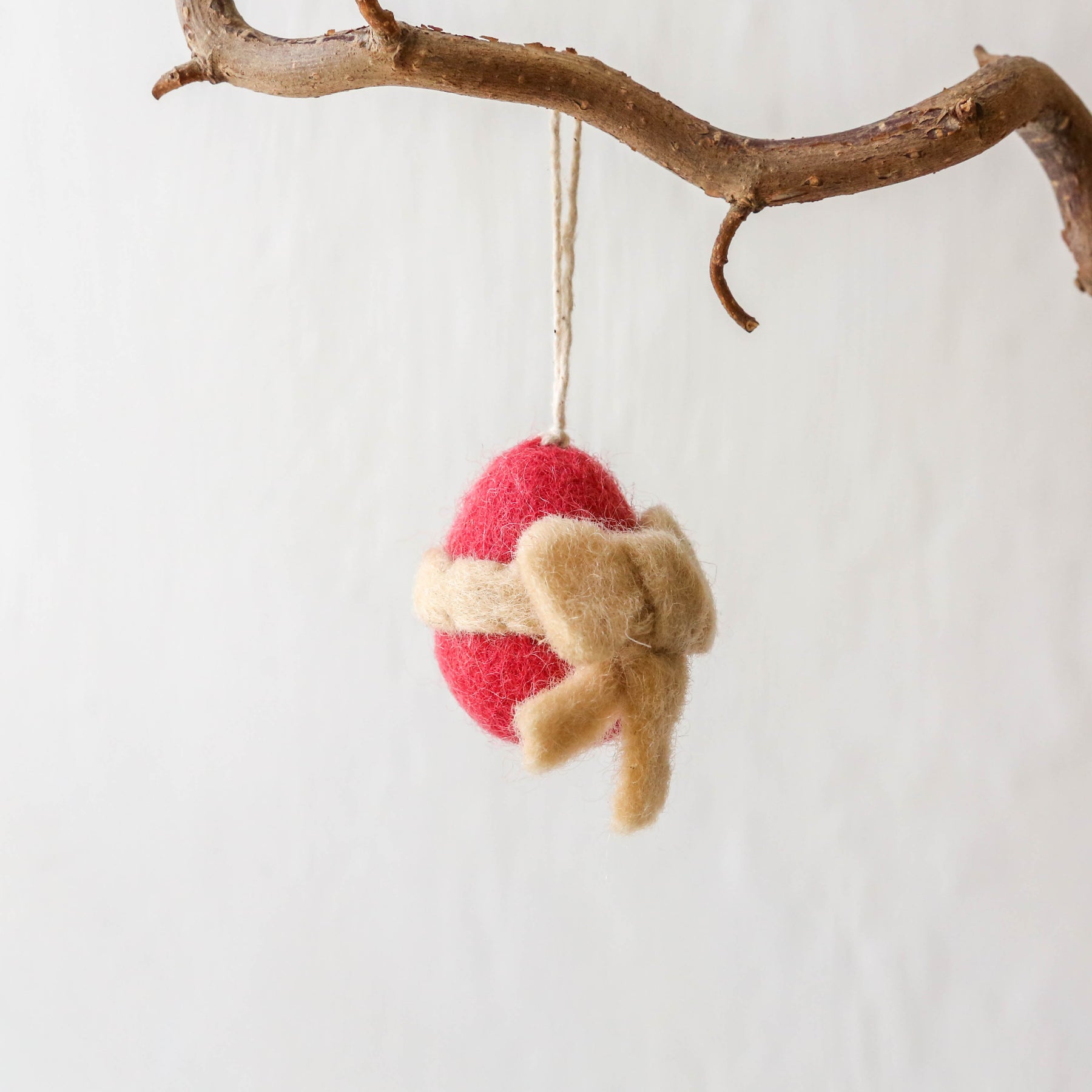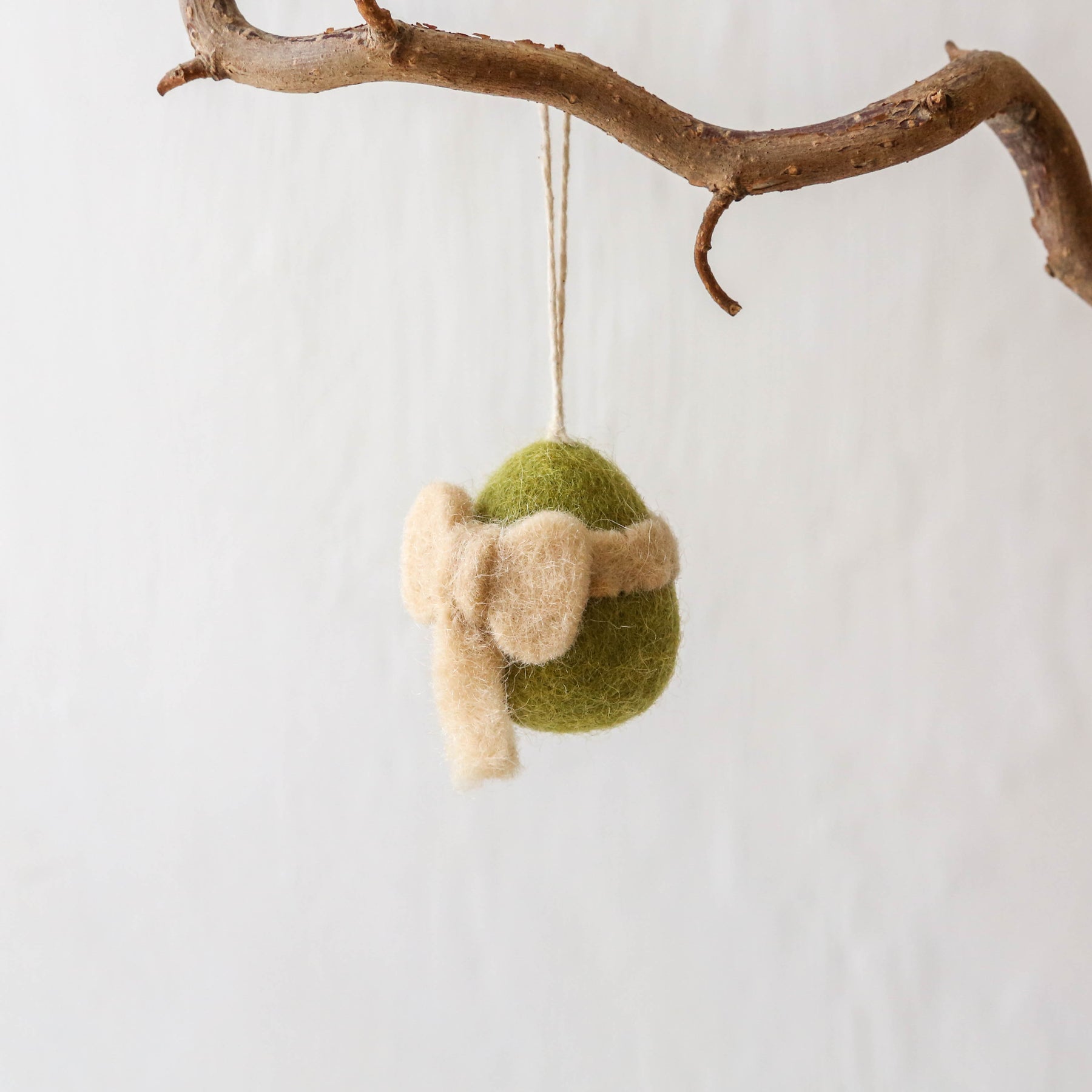 These hanging decorations are made from hand felted wool. With a cotton string loop to hang on an Easter tree or a spring display.