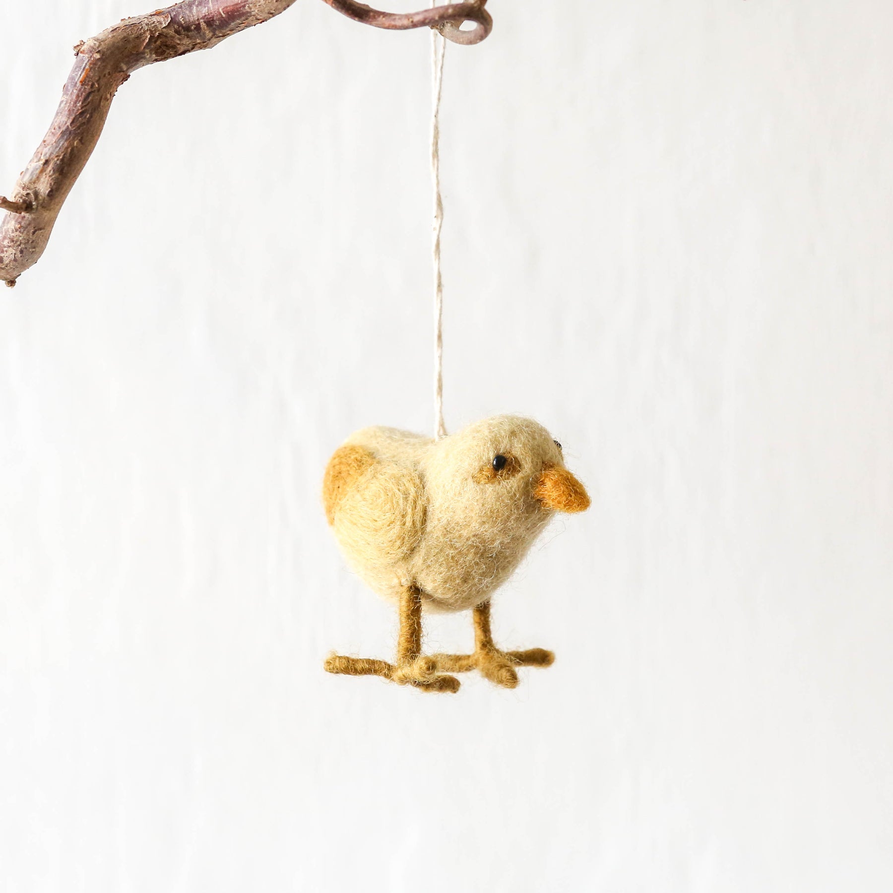 These cute bird decorations are made from hand felted wool. With a cotton string loop to hang on an Easter tree or in your Easter window.