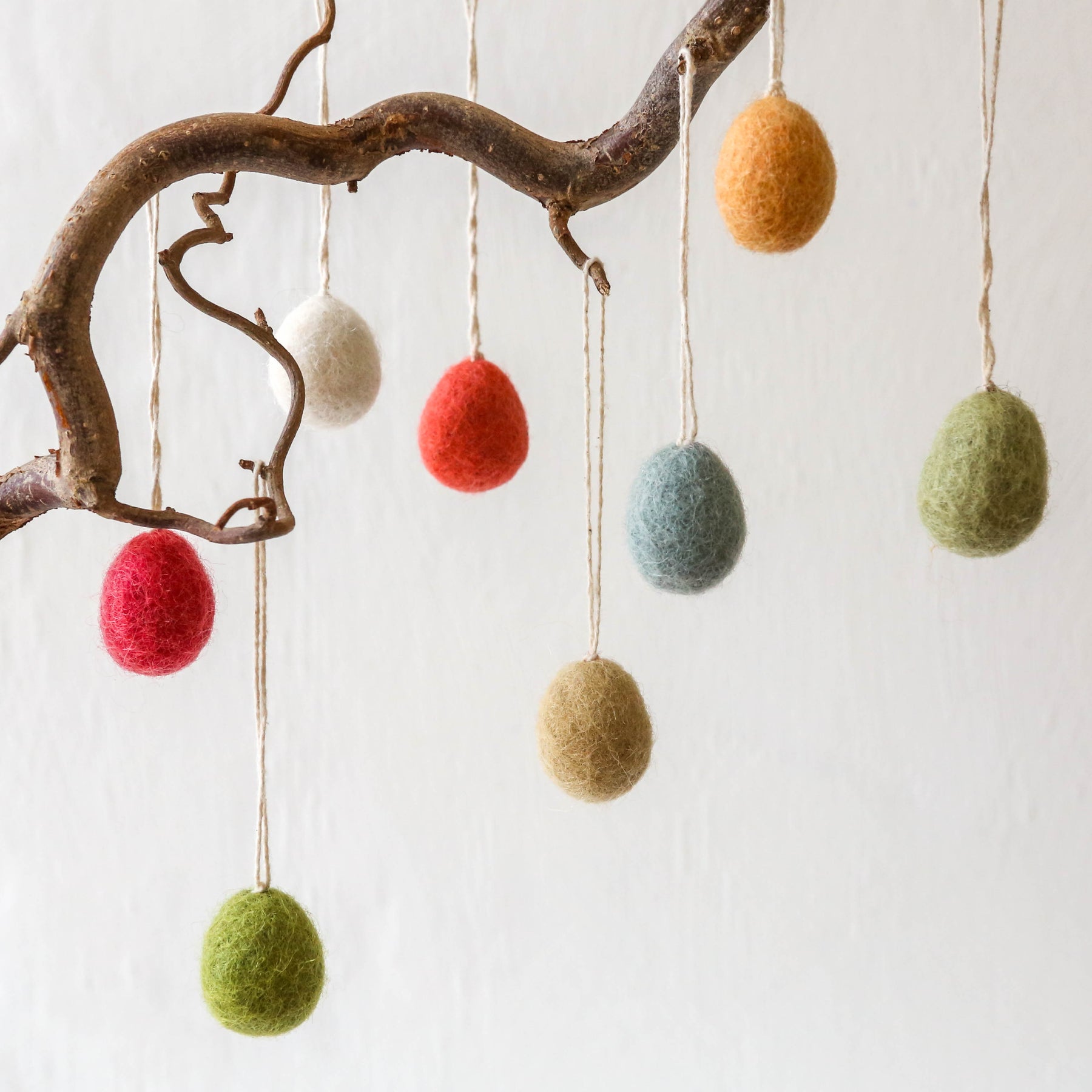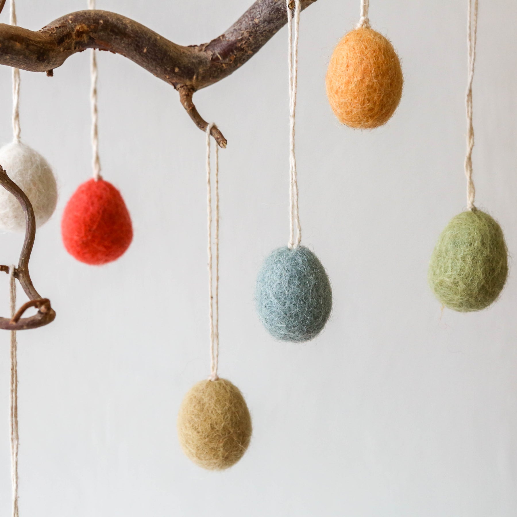 These cute pastel egg decorations are made from hand felted wool. They come with a cotton string loop to hang on an Easter tree or attached to a present.