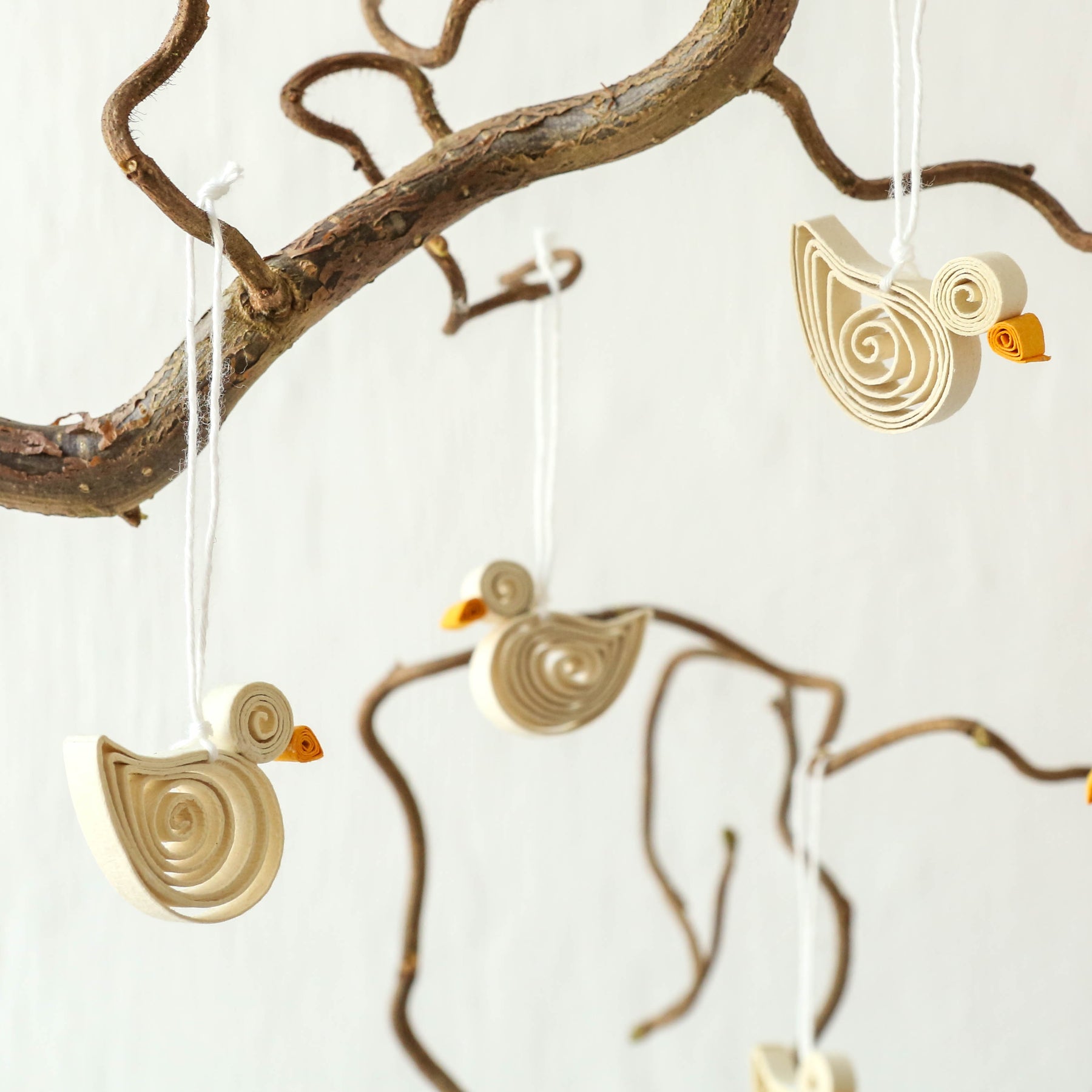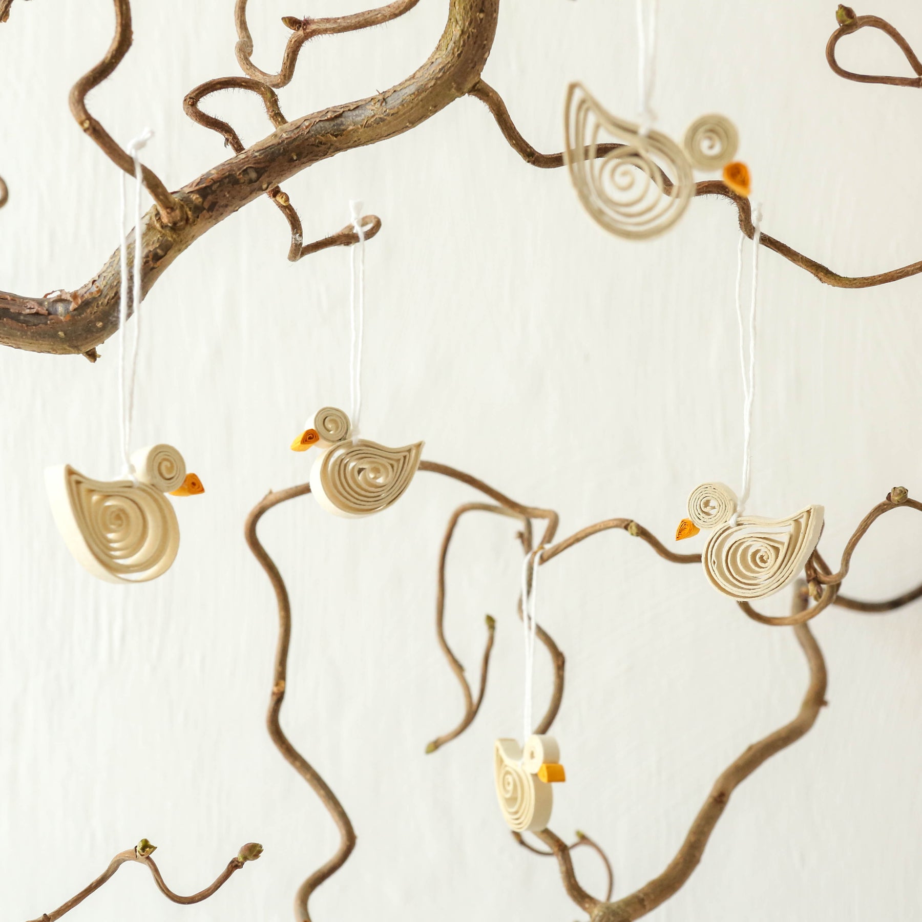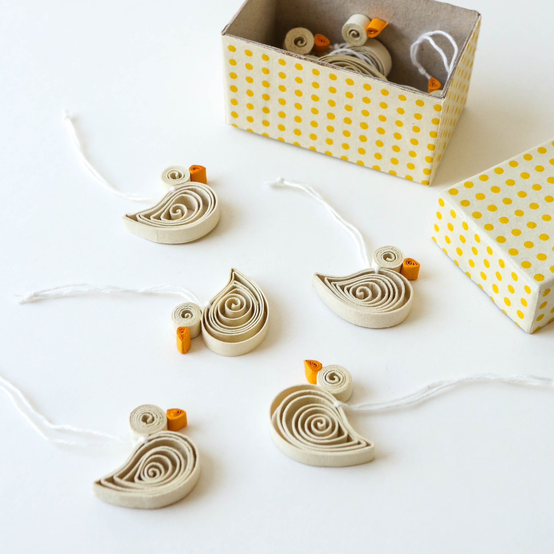 Quilled paper duck decorations, packaged in a pretty spotted box.