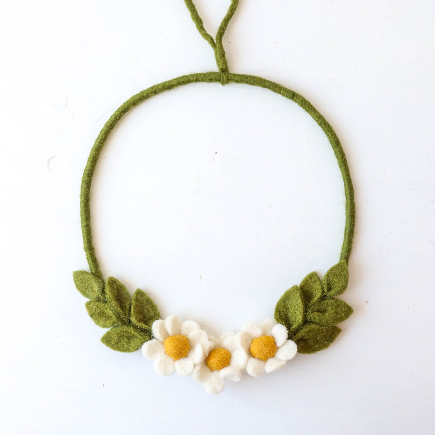 This wonderful wreath features an assortment of eggs with leaves, all made from hand felted wool. With a felt loop to hang on an Easter tree or in your Easter window.