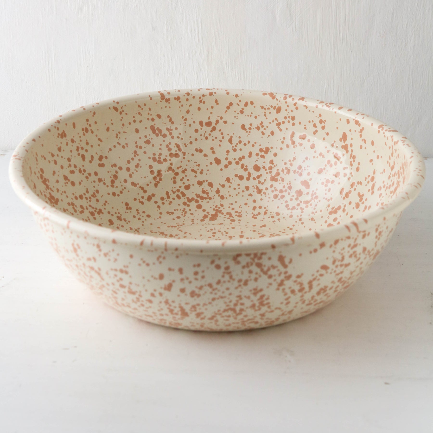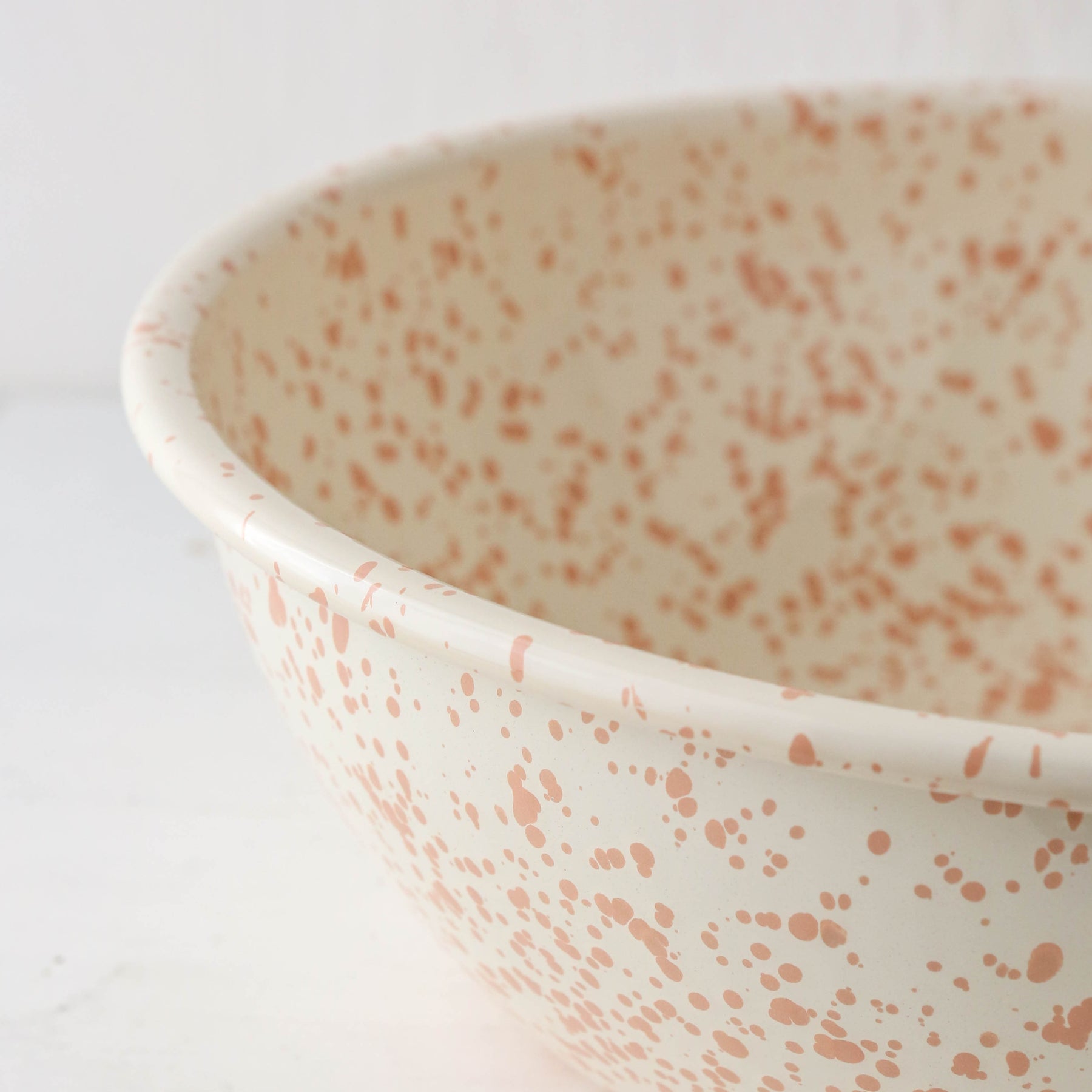 This large sized enamel basin bowl is perfect for serving big salads or mixing big batches of ingredients.