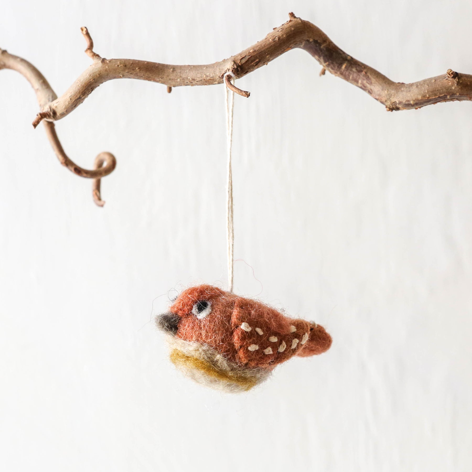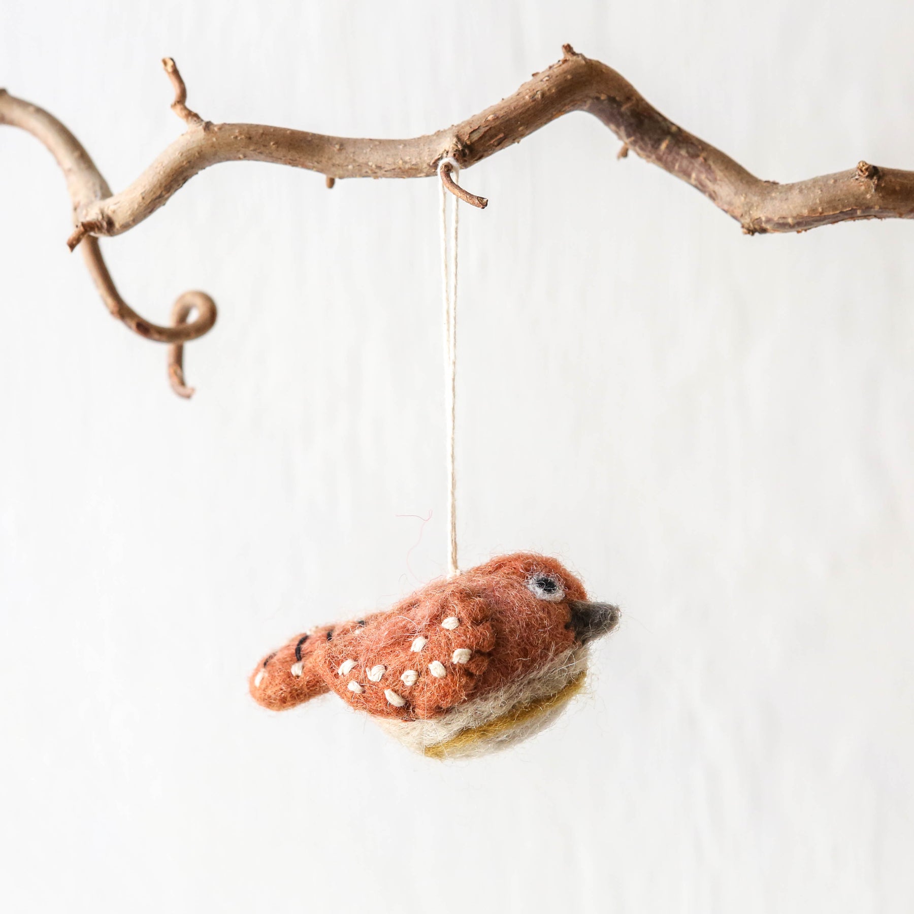 These cute bird decorations are made from hand felted wool. With a cotton string loop to hang on an Easter tree or in your Easter window.