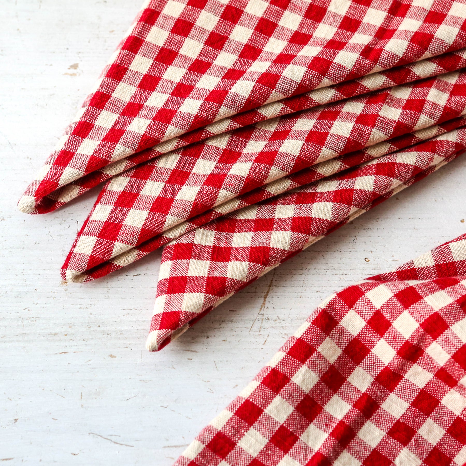 Set of 4 napkins woven in 100% cotton gingham check in red.
