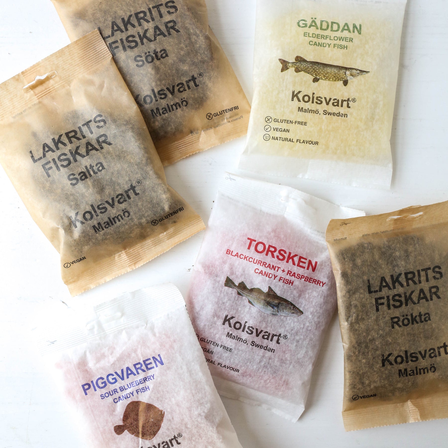 The candy fish in this bag has the shape of a real Swedish cod and comes in two flavours, blackcurrant and raspberry. Classic Swedish flavors to enjoy in a new and sweet way.