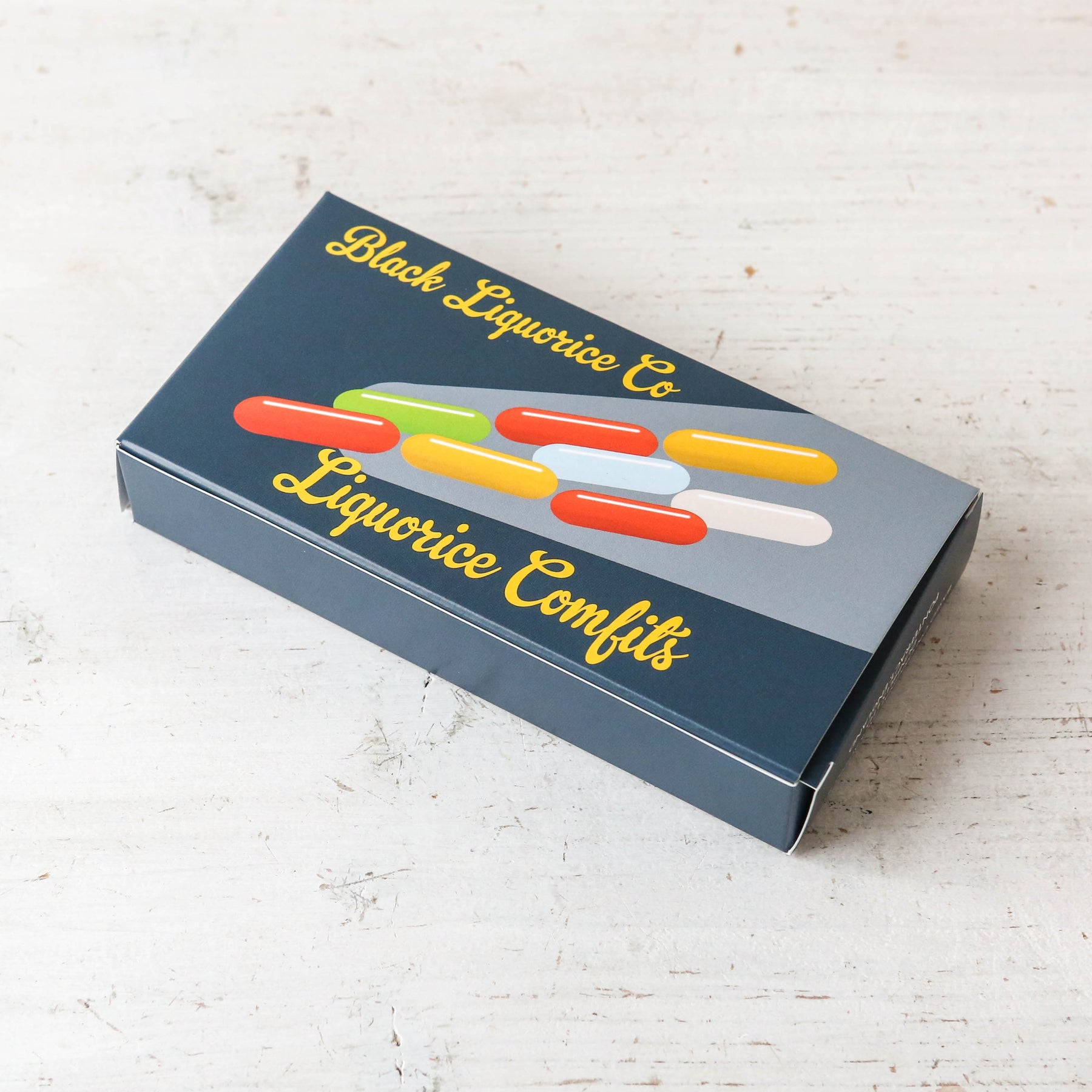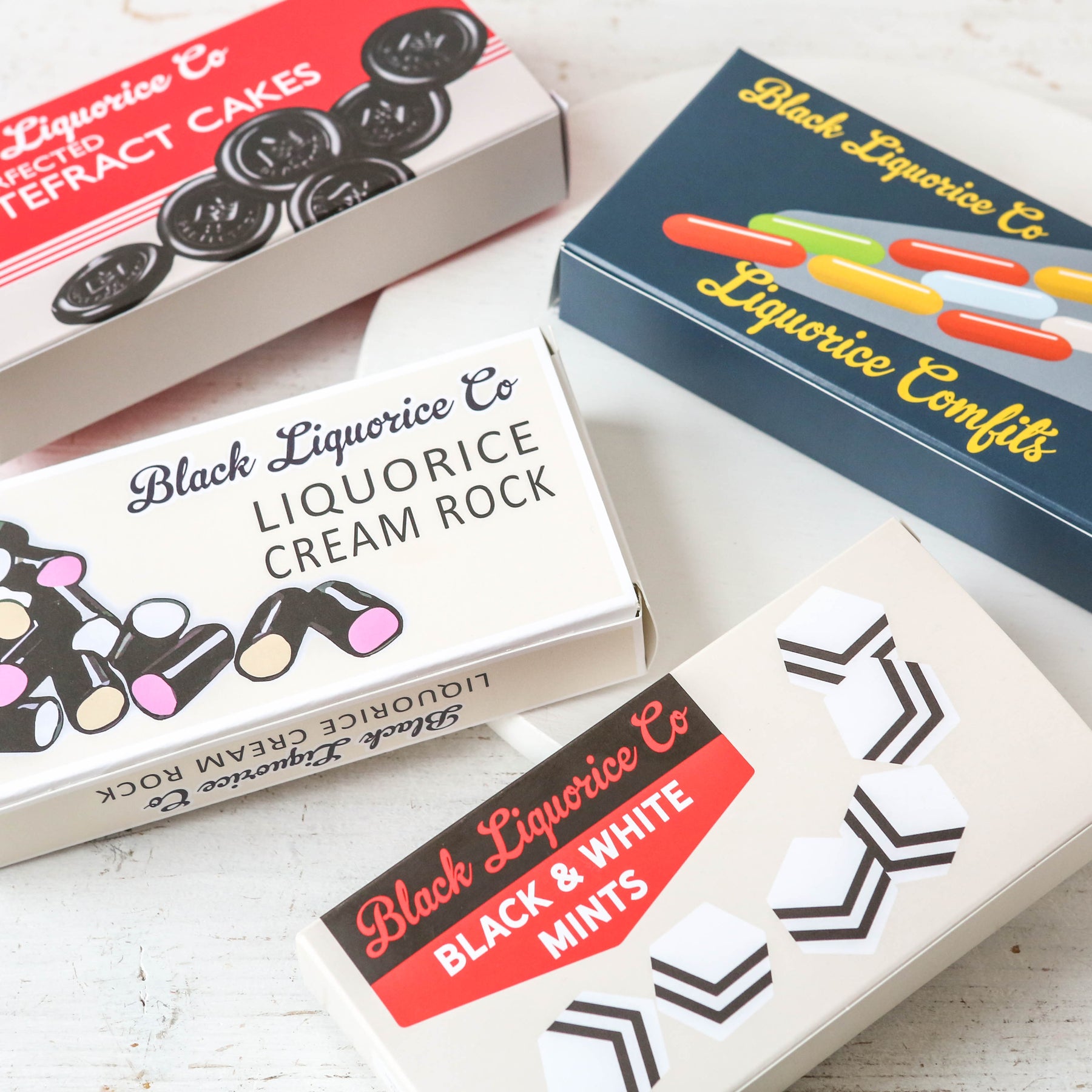 Delicious (if you like that sort of thing) liquorice in fabulous retro packaging. Choose from Black & White Mints, colourful Liquorice Confits, classic Liquorice Cream Rock or chewy Pontefract Cakes. New for 2025 - Liquorice Allsorts!