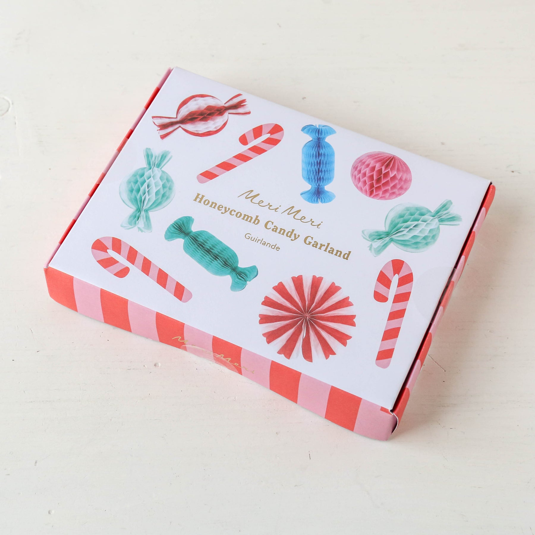 • The pennants include 7 x assorted 3D tissue paper honeycomb sweets, 3 x red and white paper candy canes, 2 x tissue paper fans