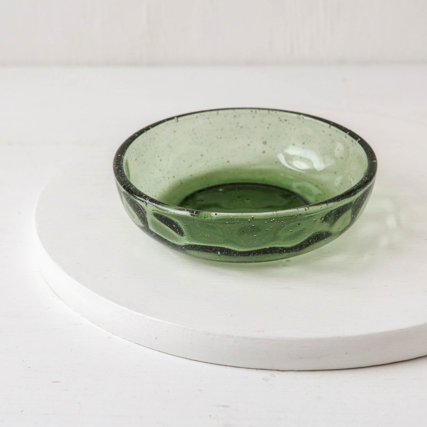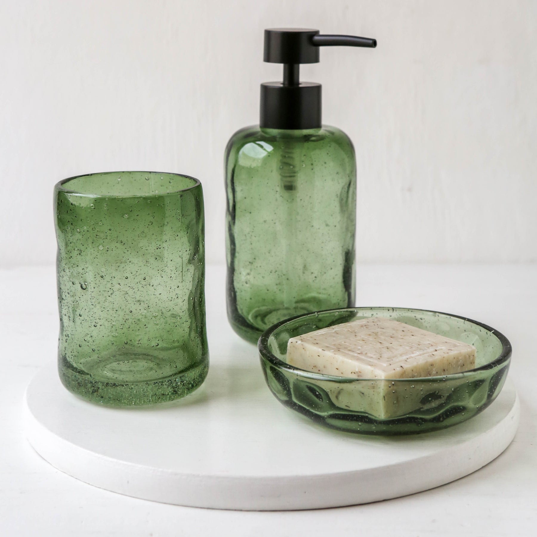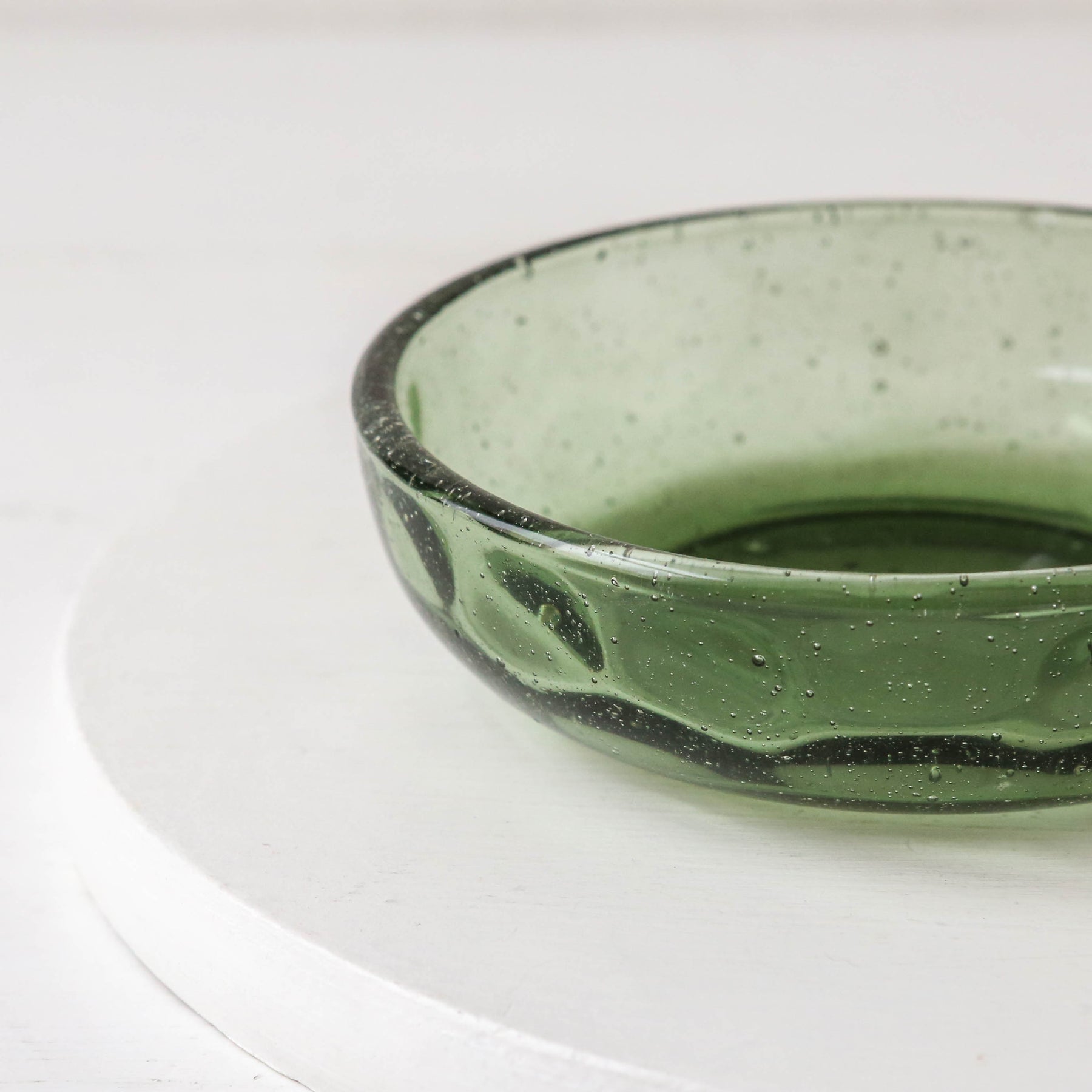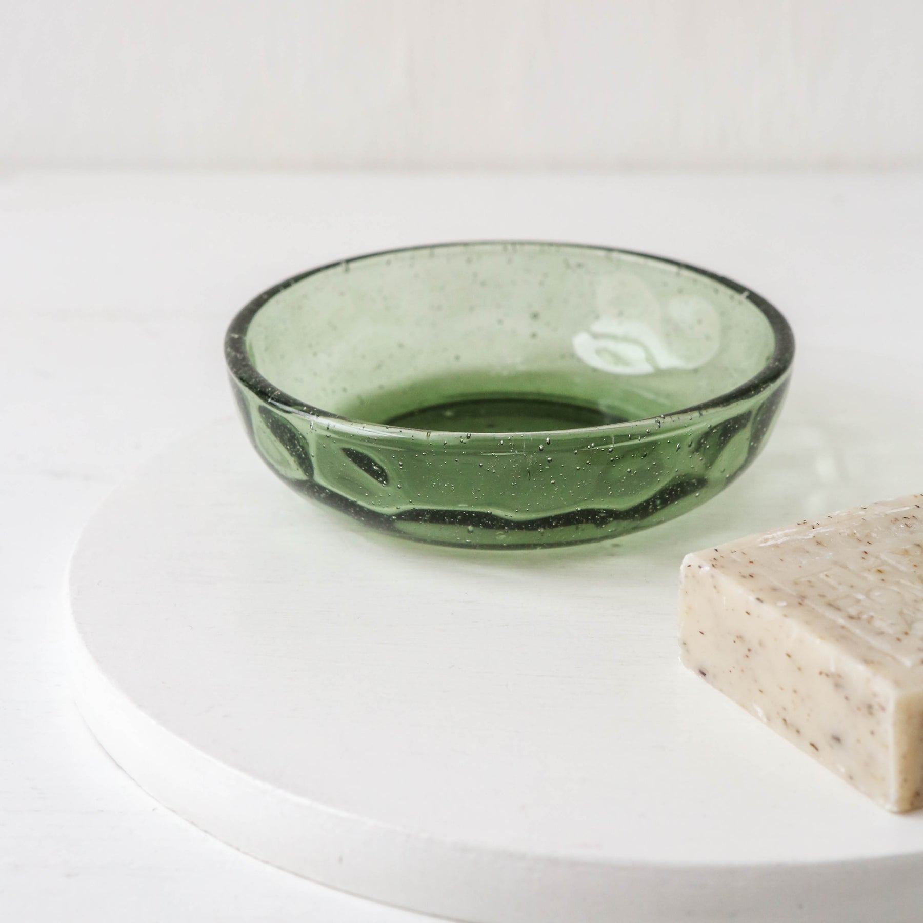 A simple organic shaped glass soap dish for your bathroom or kitchen sink.